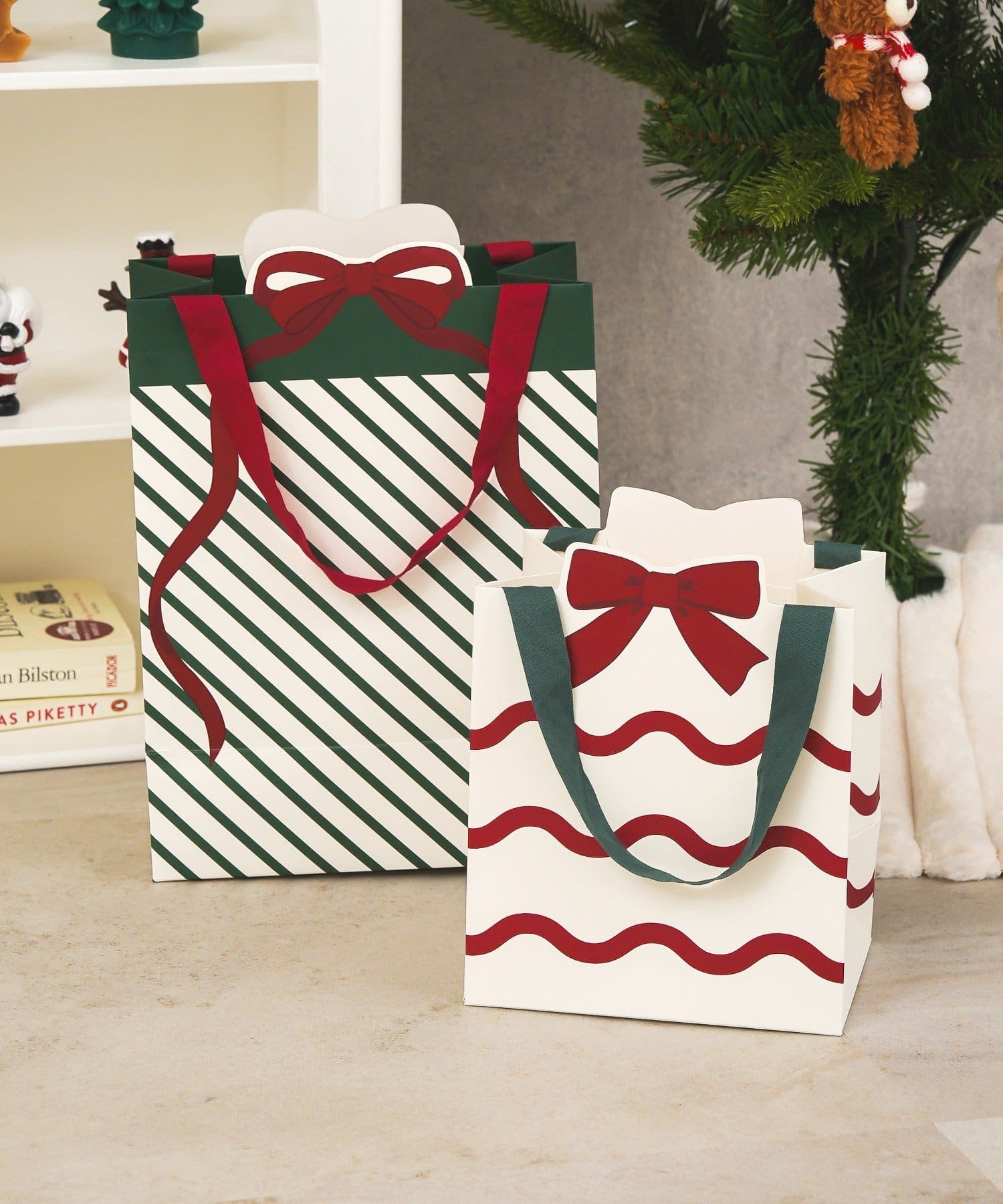 ●ストライプ×リボンデザインがほどよくかわいいラッピングバッグ。