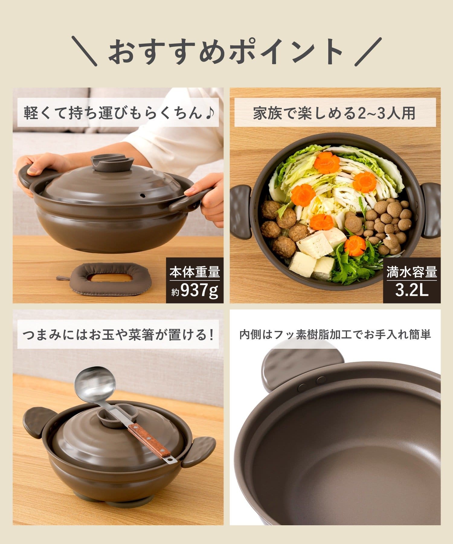 ●土鍋の風合いはそのままに、軽くて扱いやすいアルミを使用したお鍋。