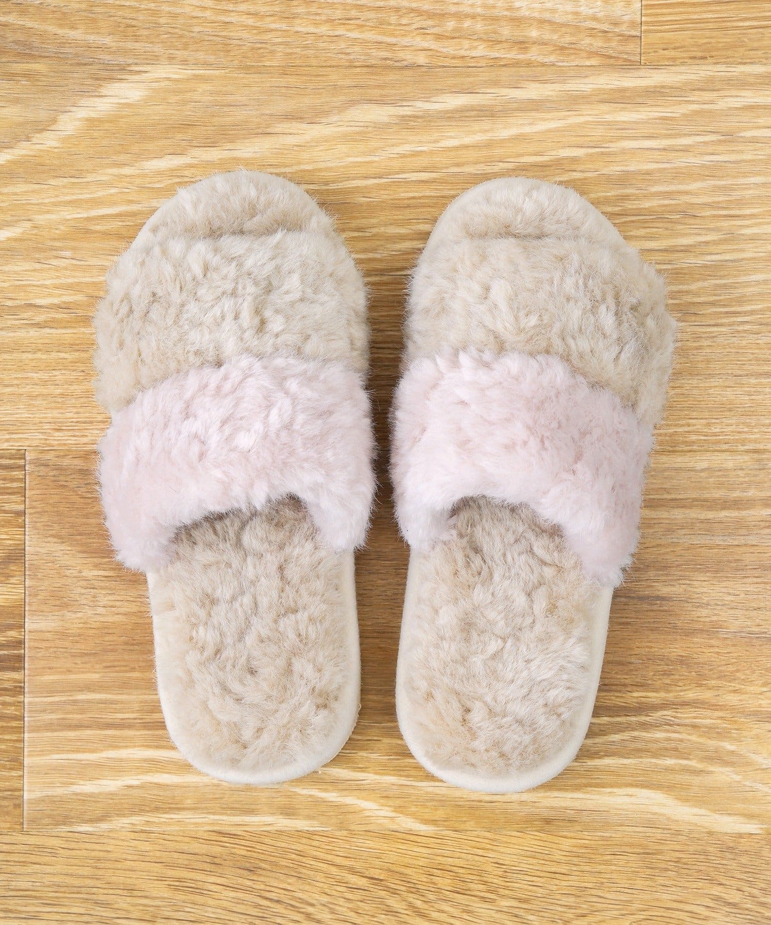 ●やさしいふわふわの肌ざわりで、心地よく履けるツートンポコポコファースリッパです。