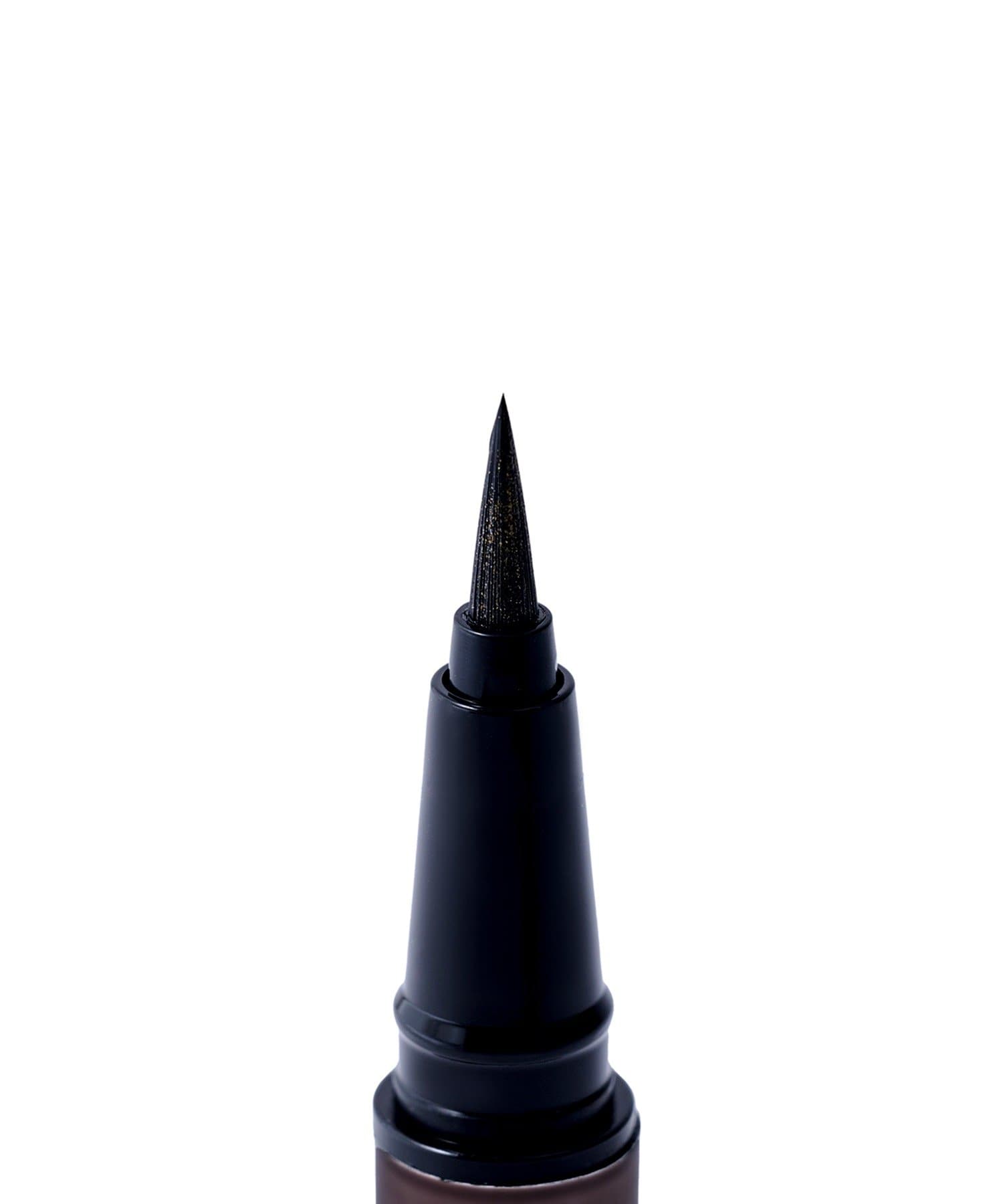 ②アイラインをひく方の目を軽く閉じ、まつげの際にそって目頭から目尻までラインを描きます。