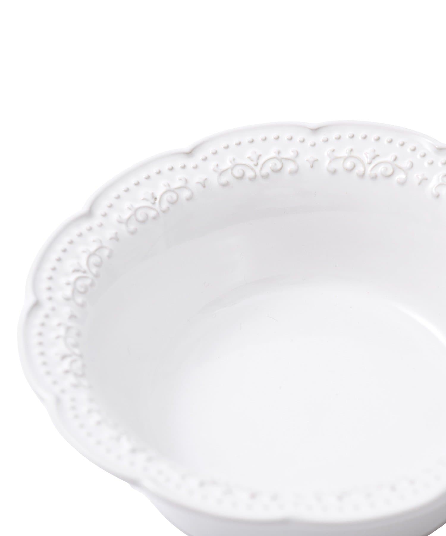 ●フチにあしらわれたデザインとホワイトカラーで食卓を上品に演出してくれます。