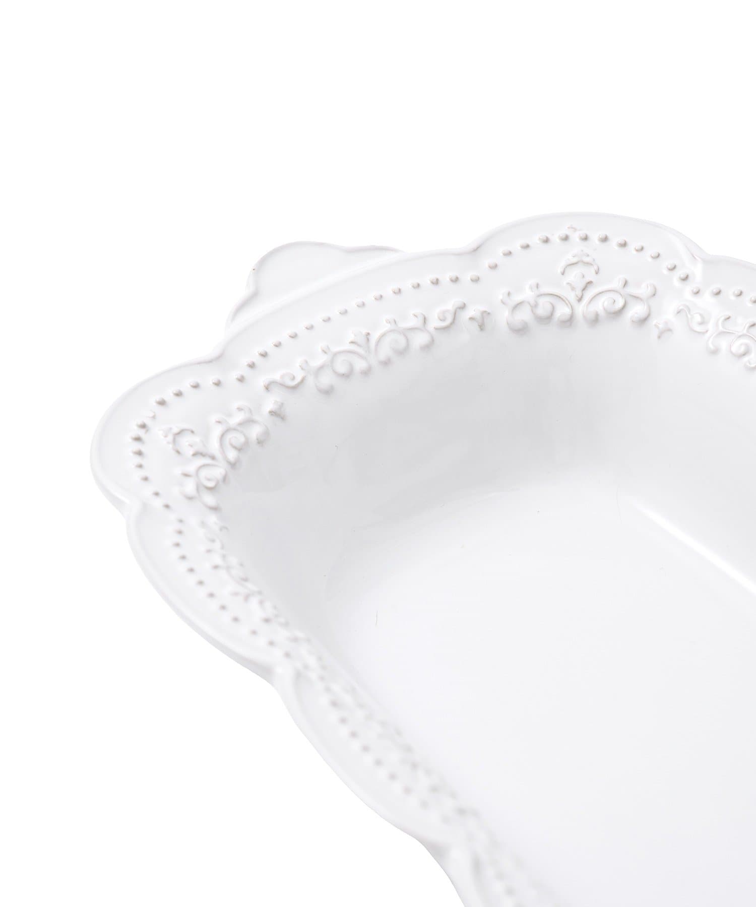 ●フチにあしらわれたデザインとホワイトカラーで食卓を上品に演出してくれます。
