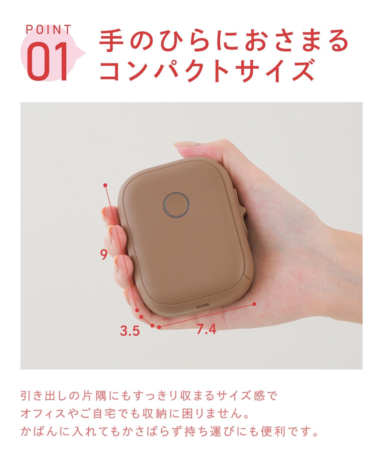 ●本体は手のひらに収まるほどのサイズ感で収納しやすく、持ち運ぶ際もコンパクトです。
