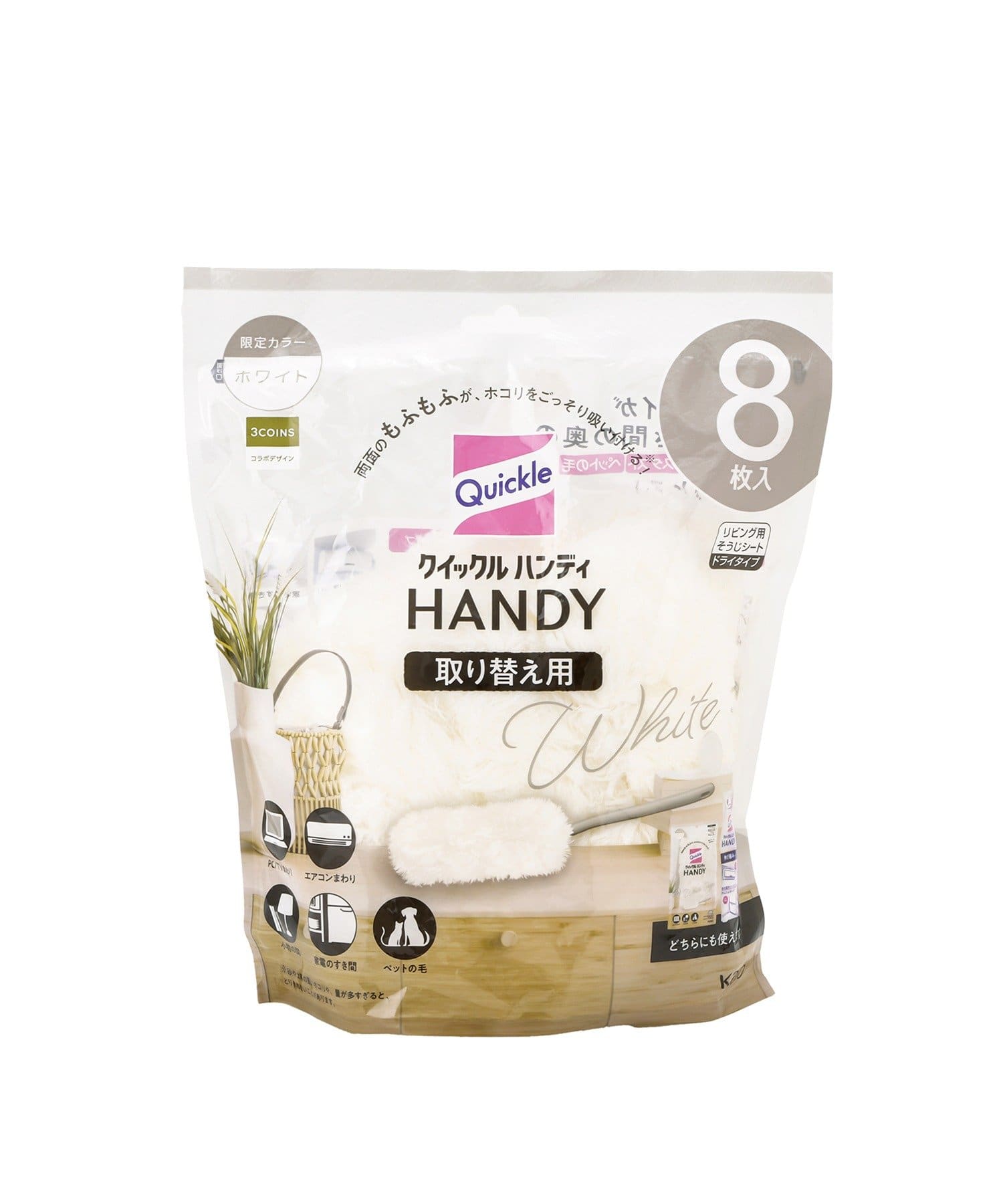 クイックルハンディ取り替え用ホワイト8枚入/3COINSコラボデザイン