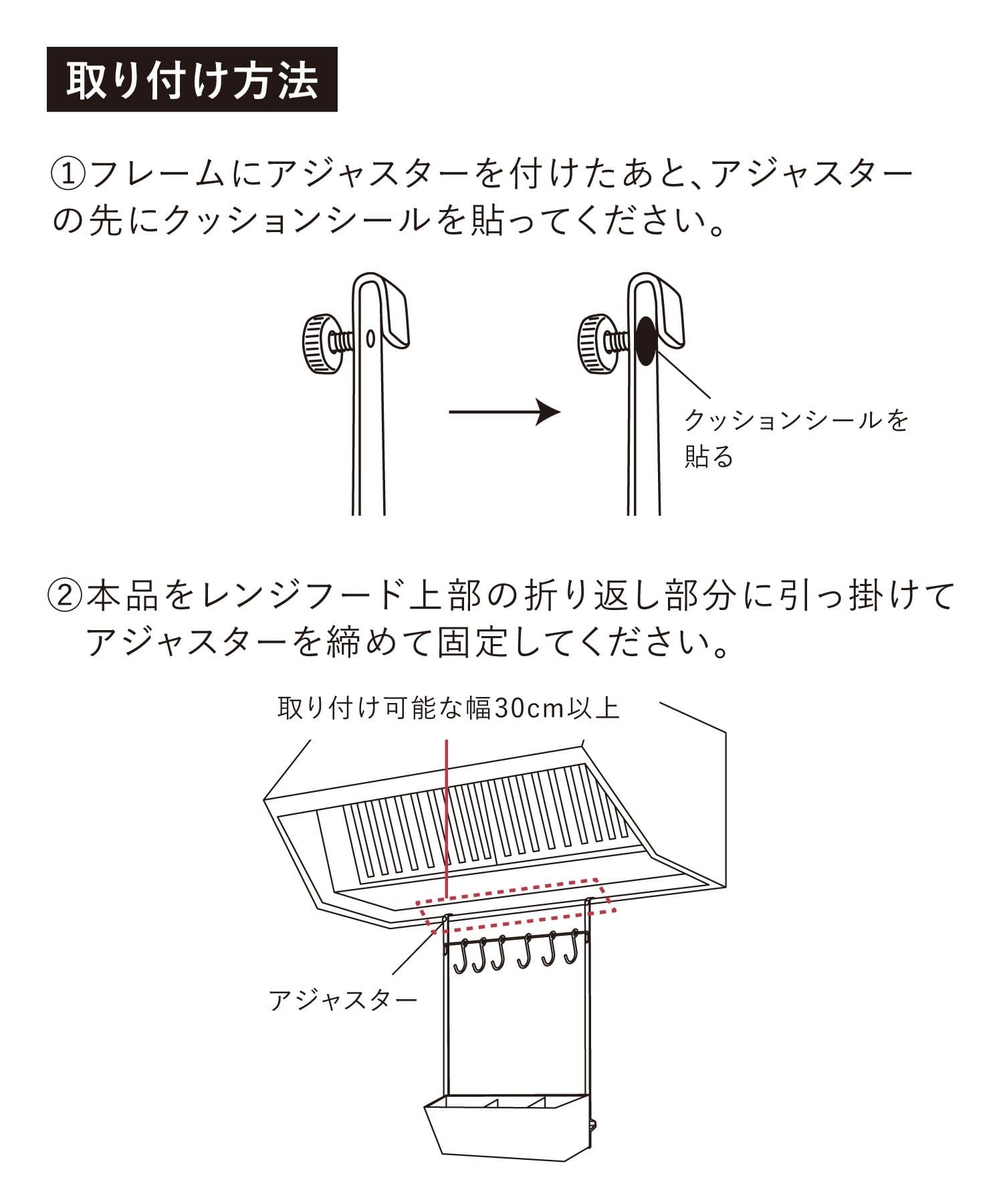 ●レンジフードに引っ掛けて、デッドスペースを有効活用。