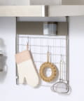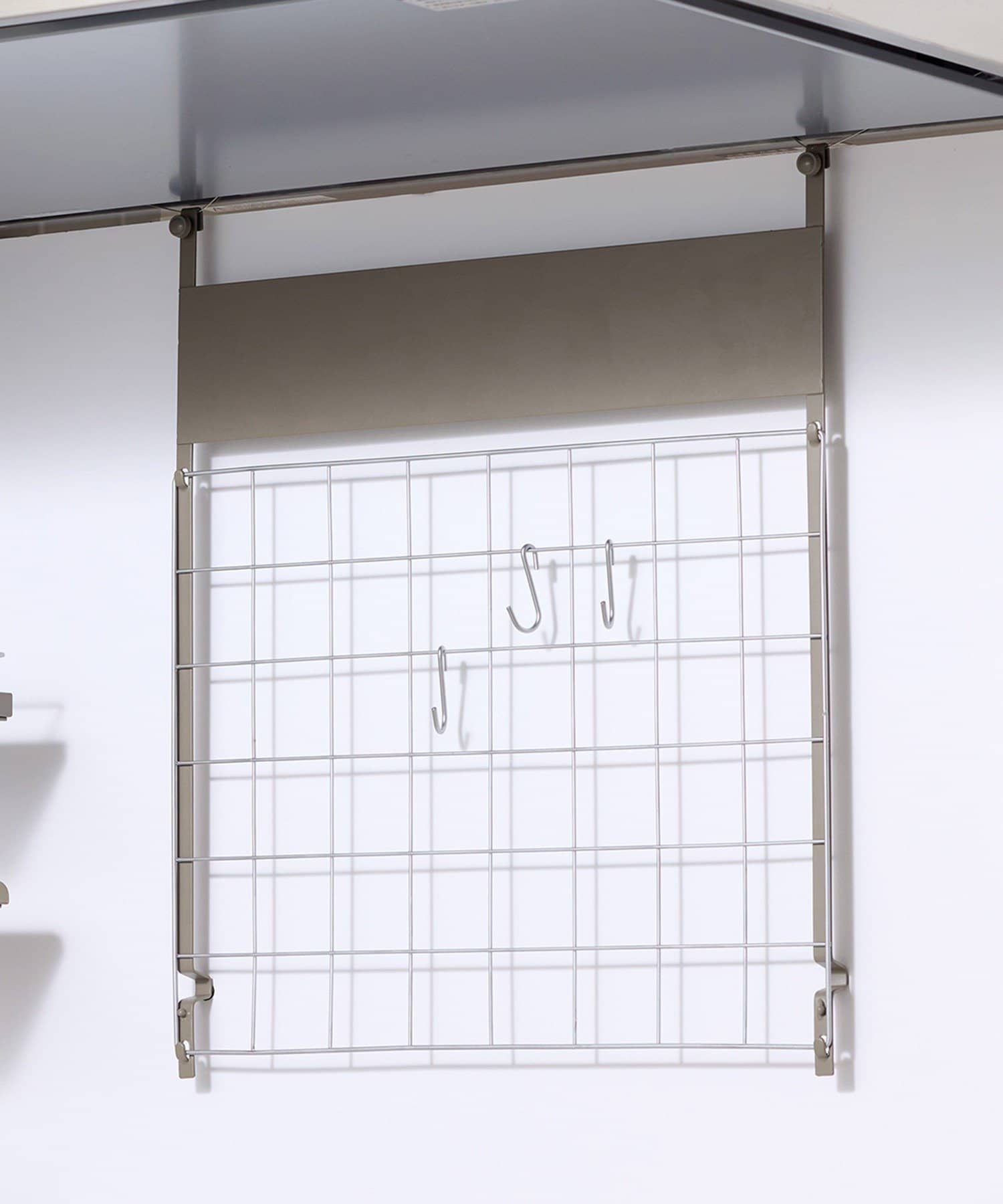 ●下段メッシュパネルはフックで調理器具など小物が掛けられます。