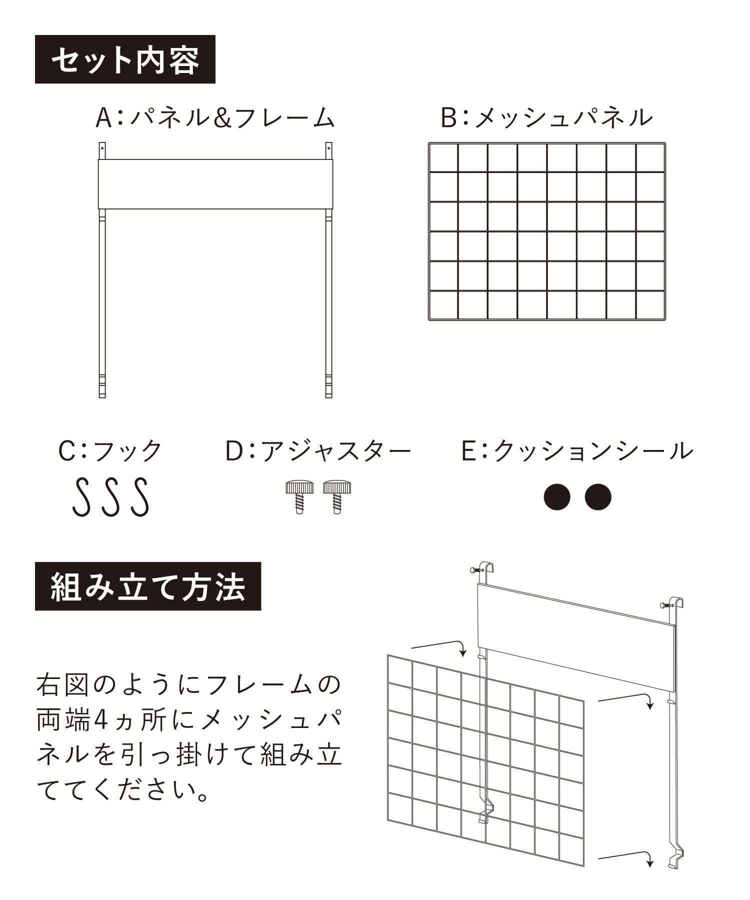 ●本品設置後に、メッシュパネル部分が手前に下がってしまう場合はご使用をおやめください。収納したものが落下し、ケガや破損、火災の原因となる恐れがあります。