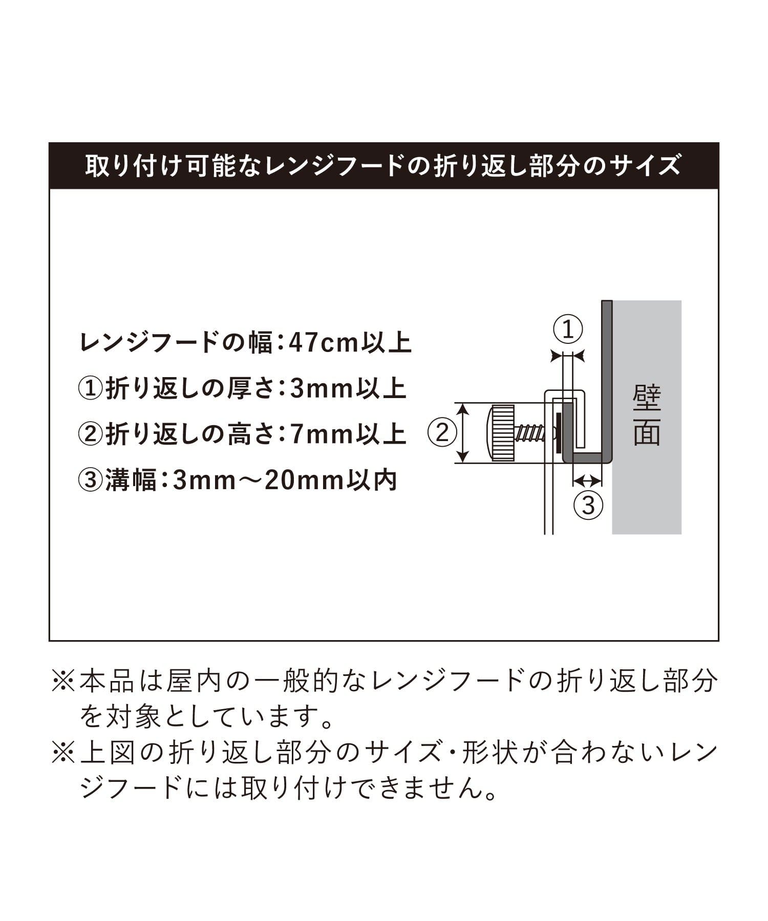 ●あらかじめレンジフードの折り返し部分のサイズや厚みなどをご確認の上、ご購入ください。