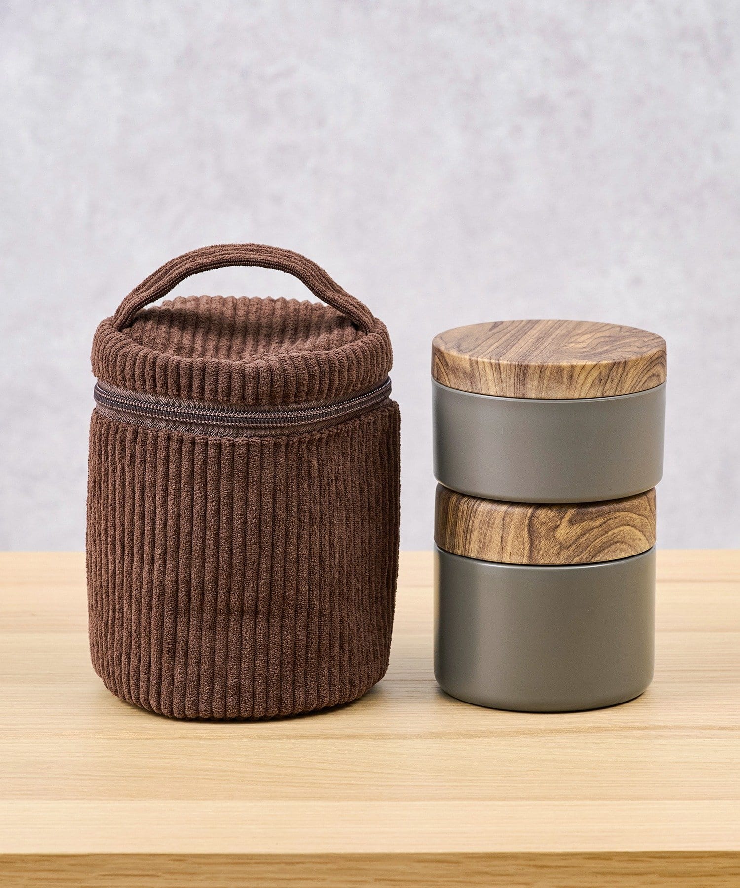 • コーデュロイジャーケースに木目風ランチコンテナ:300mlと一緒に入れられます!