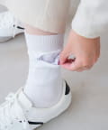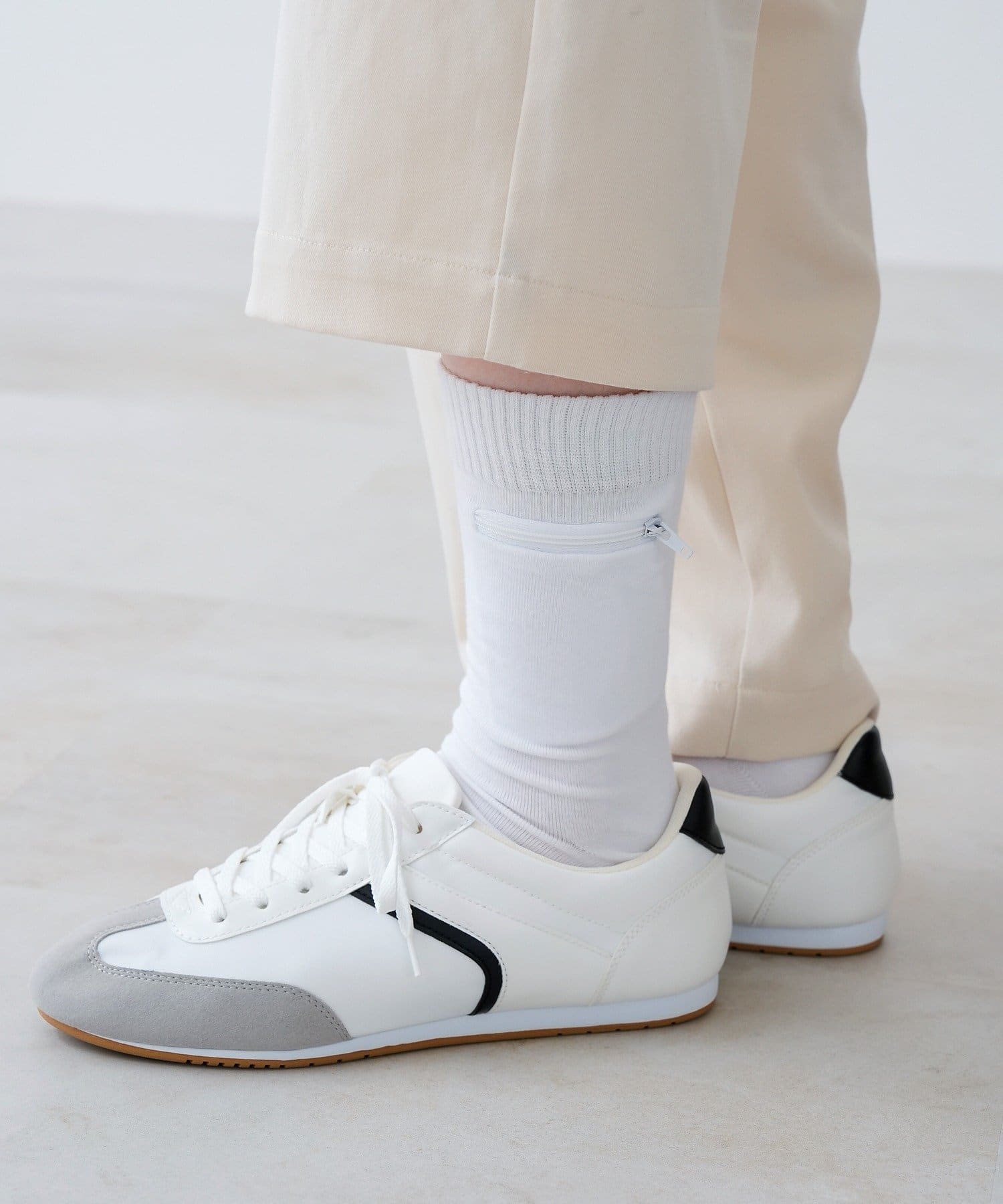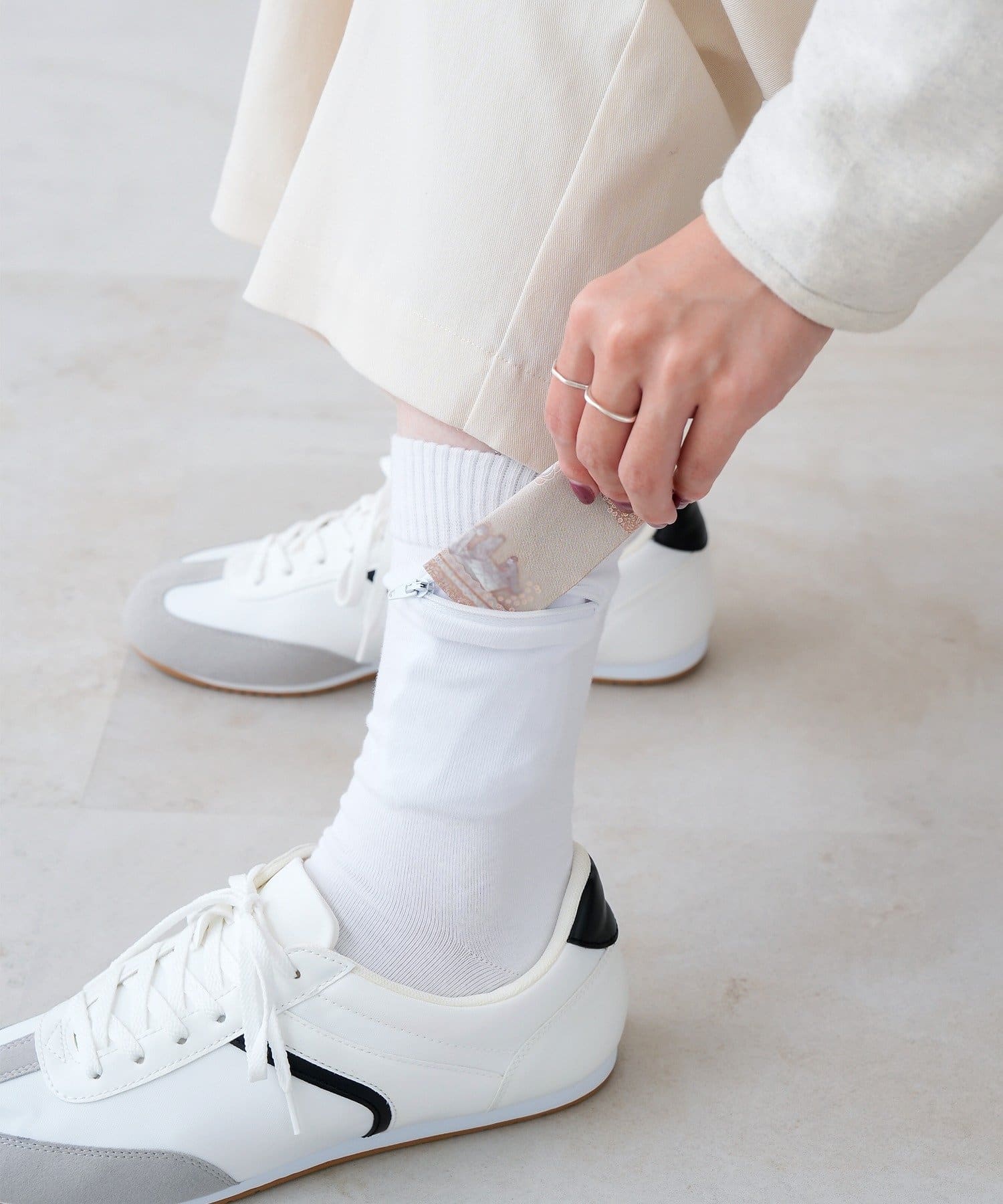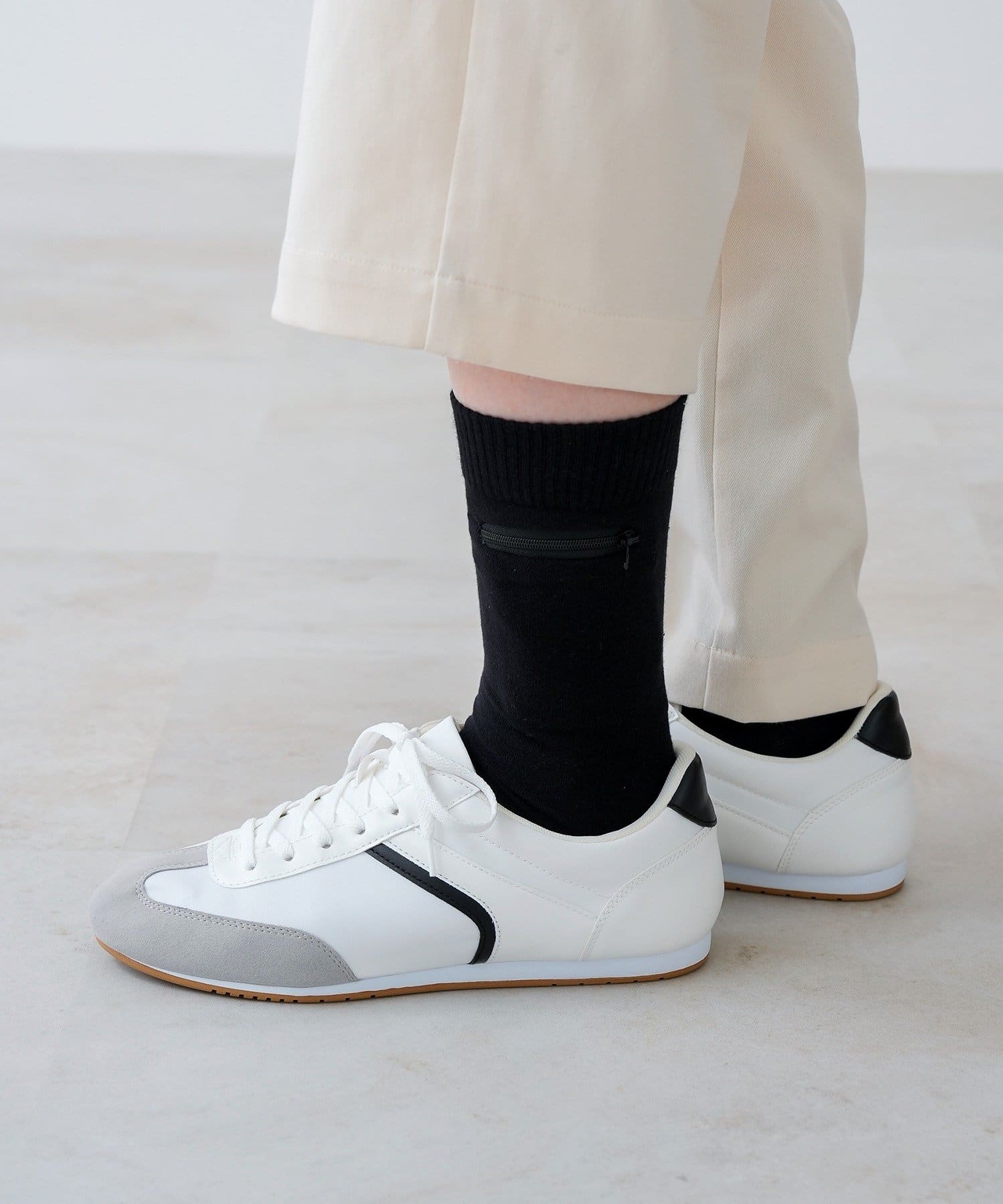 ●小さな薄いお札や鍵などの貴重品を靴下の側面ポケットに収納できる構造になっています。