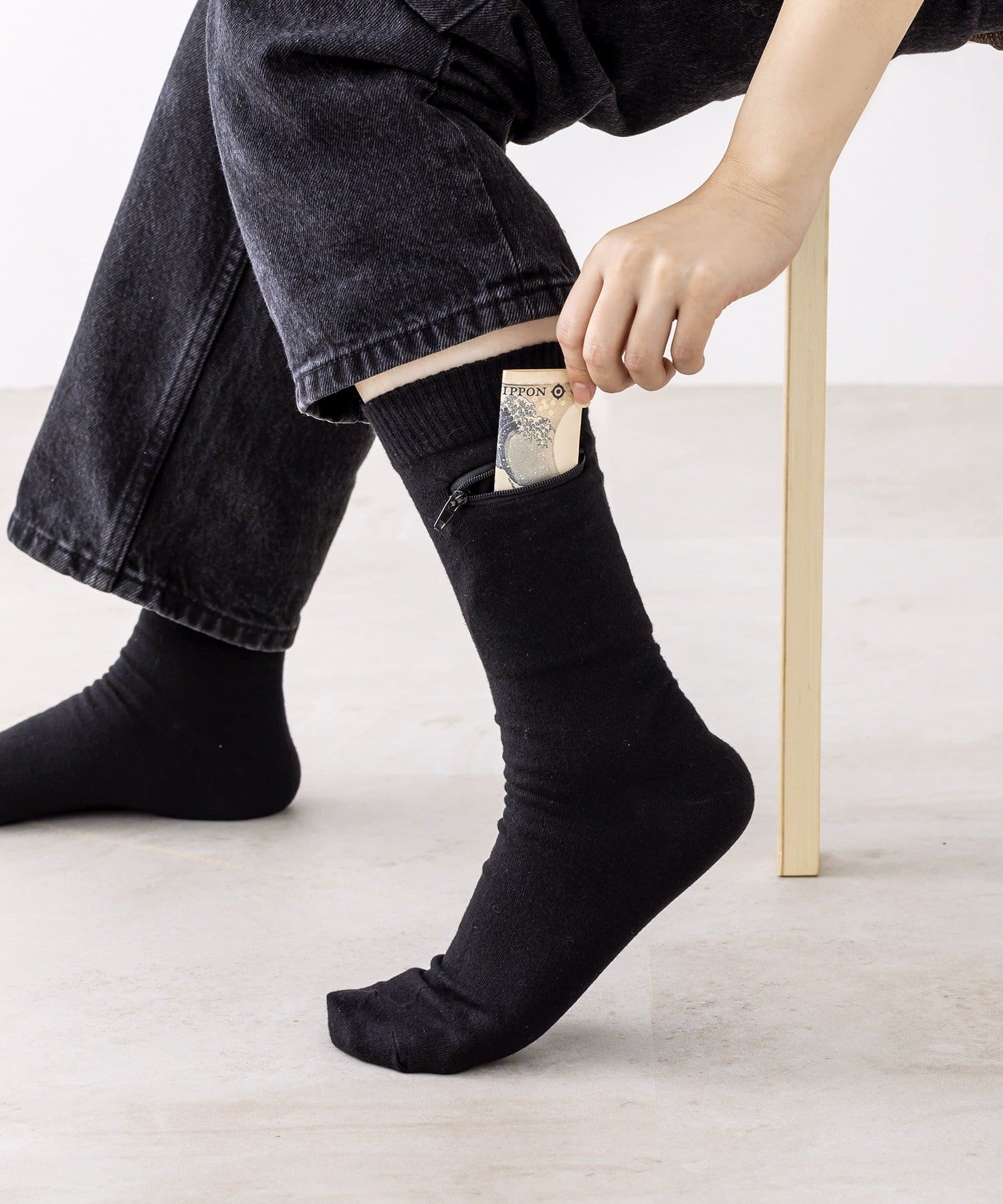 ●見た目は普通の靴下に見えますが、両足の側面にポケットが付いたソックス!