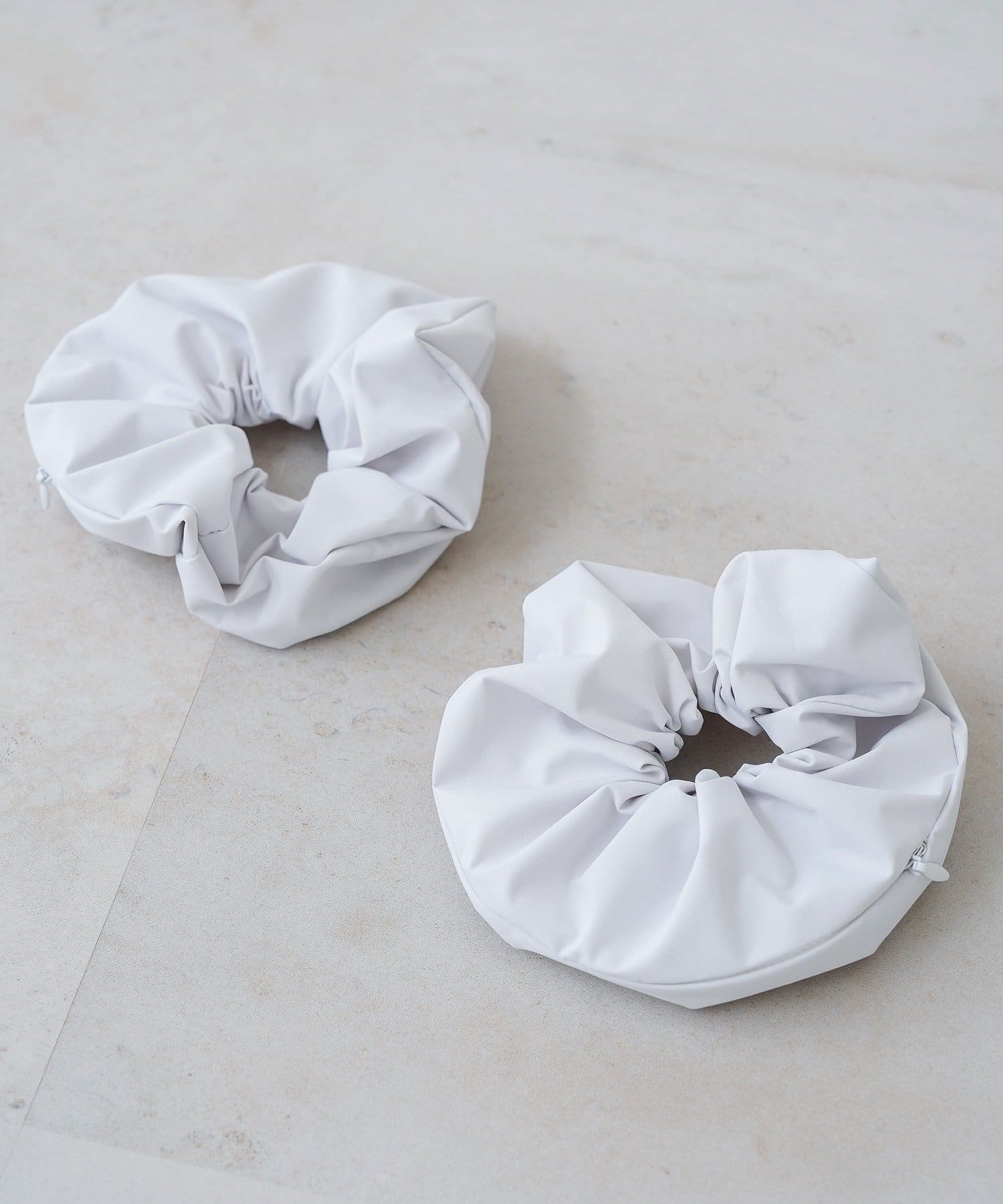 ●小さな貴重品小銭や鍵、イヤホンなどを収納できる構造になったシュシュ!