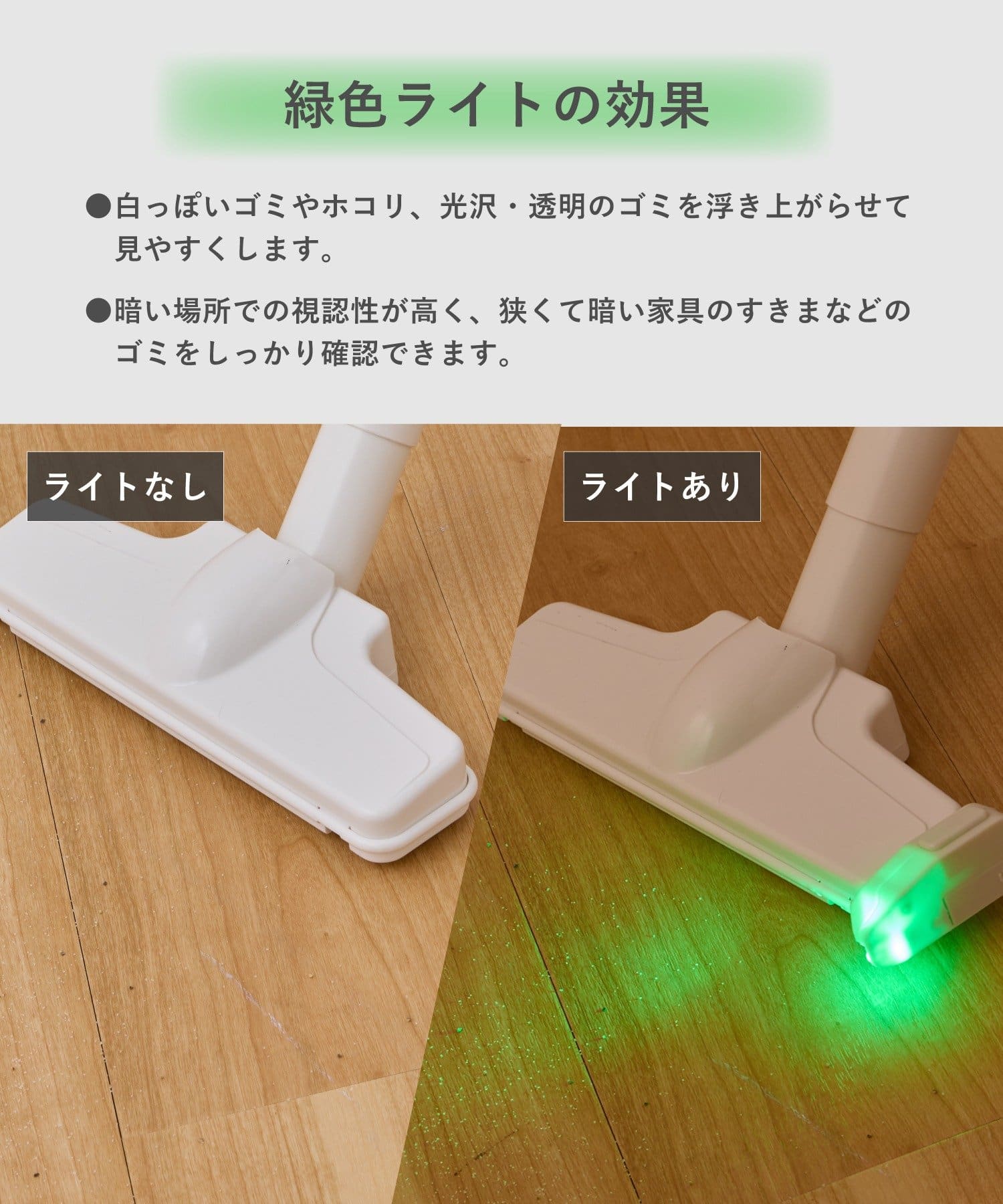 ●目では見えにくいホコリやペットの毛も緑のライトではっきり見えるようになります◎