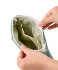 ●貴重品やサウナ後のケアアイテム入れとして使えるコットンポーチ。