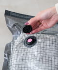 ●中に衣類を入れて別売りの圧縮機や掃除機などをバルブの穴に当てると簡単に圧縮ができます。