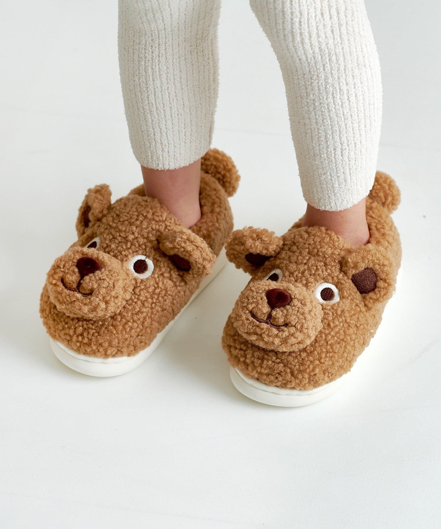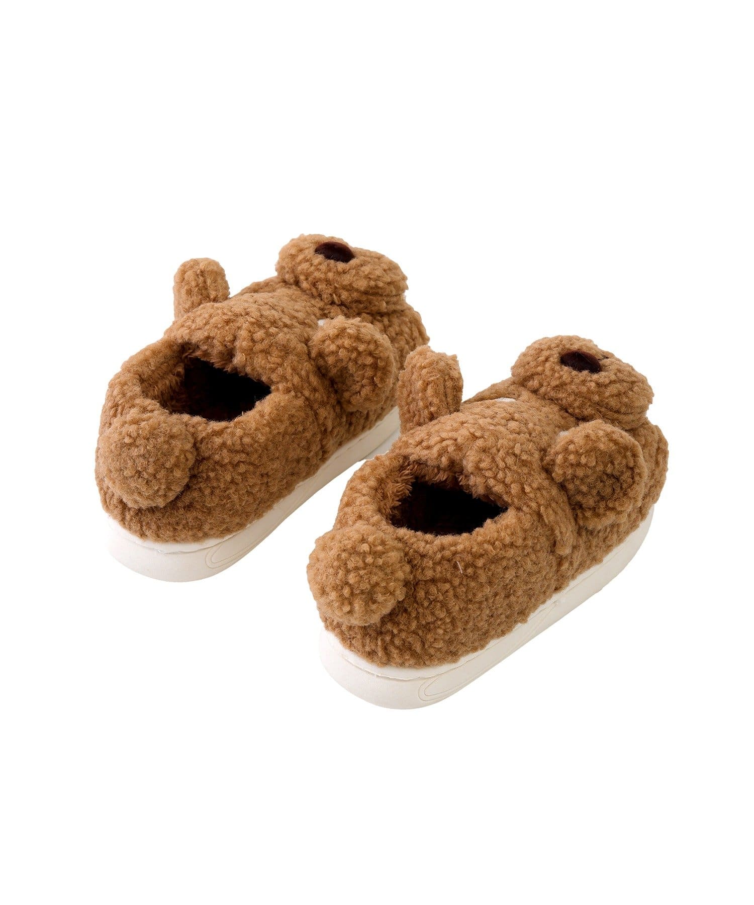 ●くまのお顔デザインが愛らしい、ふわふわ素材のスリッパです。