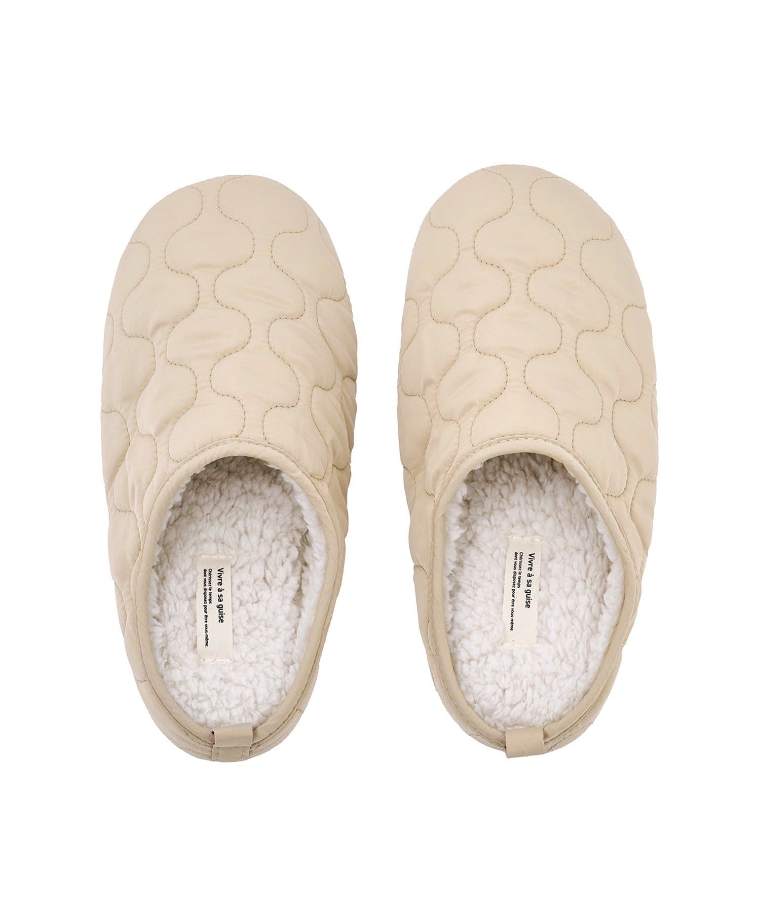 ●ふわふわの肌ざわりで、足元をあたたかく包むキルトボアスリッパです。