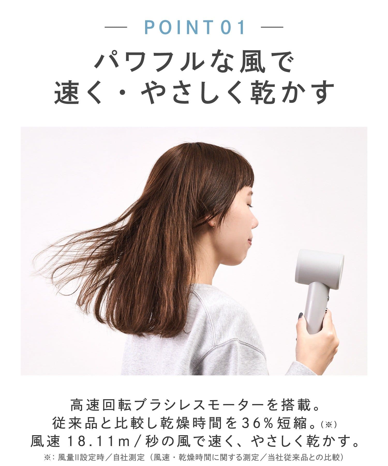 ●風速18.11m/秒のパワフルな風で乾燥時間を約36%短縮。(※1)速く・やさしく乾かす速乾性を実現しました。