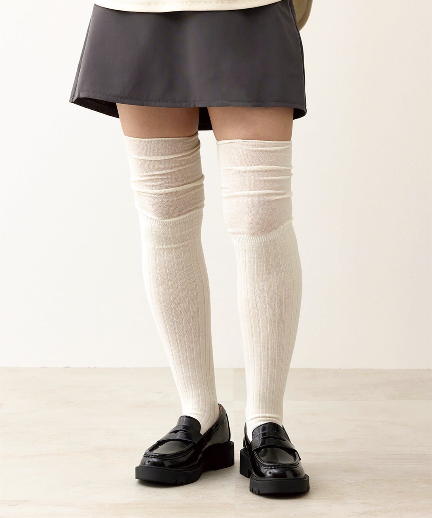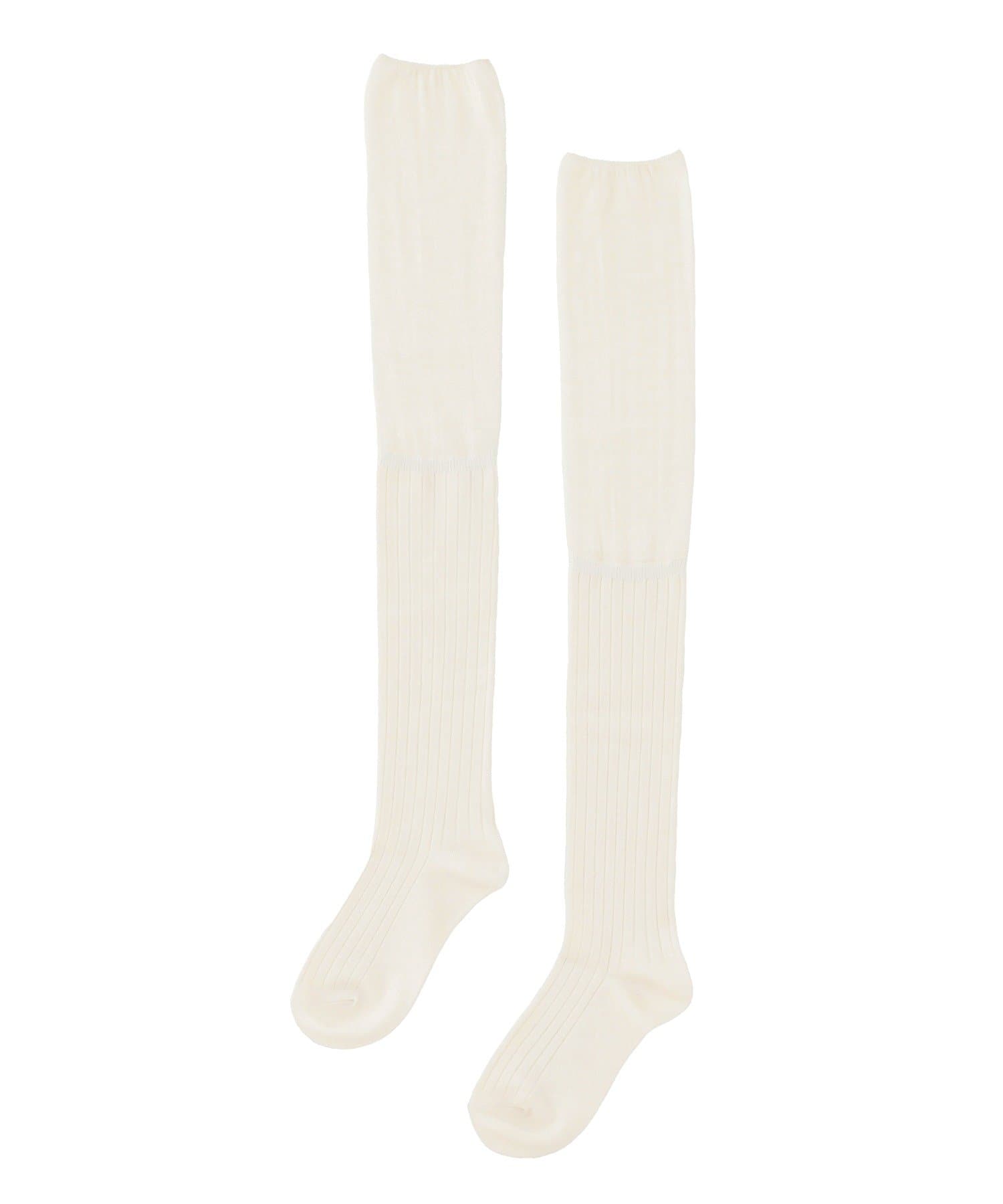 ●リブとガーゼのきりかえデザインのニーハイソックス。