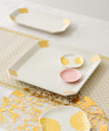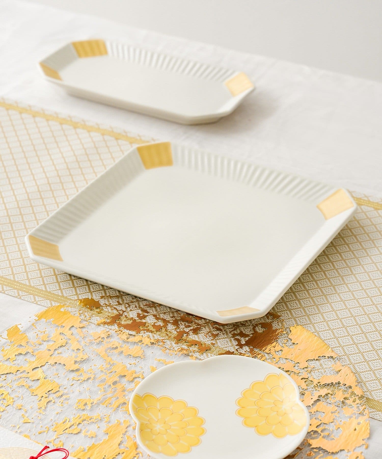 ●ゴールドの縁が華やかで、お祝いの食卓にぴったりなしのぎ大皿。