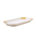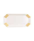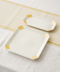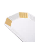●ゴールドの縁が華やかで、お祝いの食卓にぴったりなしのぎ長皿。