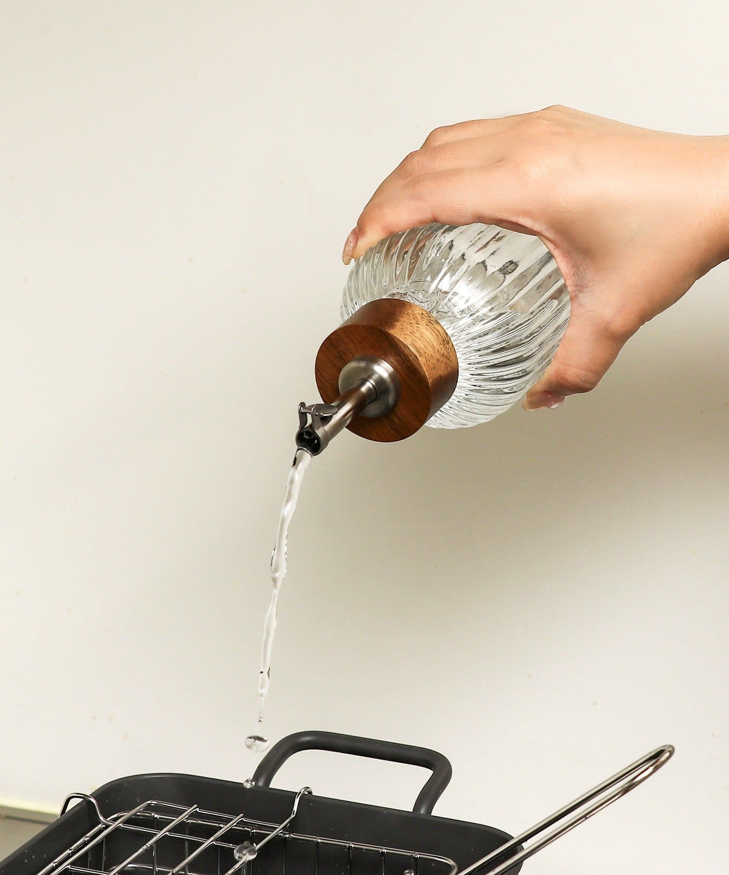 ●片手でオイルが注げるので、調理しながらでも使いやすいです。
