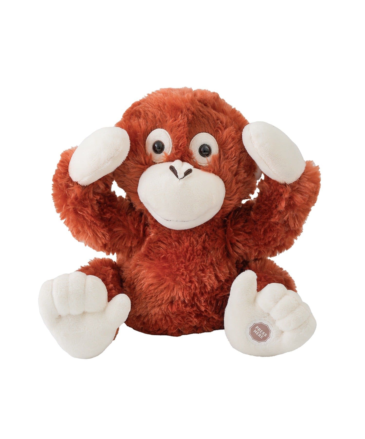 2.スイッチをONにした状態で、PRESS HEREのボタンを押すと、「♪Peek-a-booキャハハハ(笑い声)」と言って、いないいないばあをします。もう一度ボタンを押すと止まります。遊び終わったら必ずスイッチをOFFにしてください。