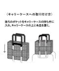 後ろのポケットをキャリーケースの持ち手に入れ、キャリーケースの上に本品を置く。