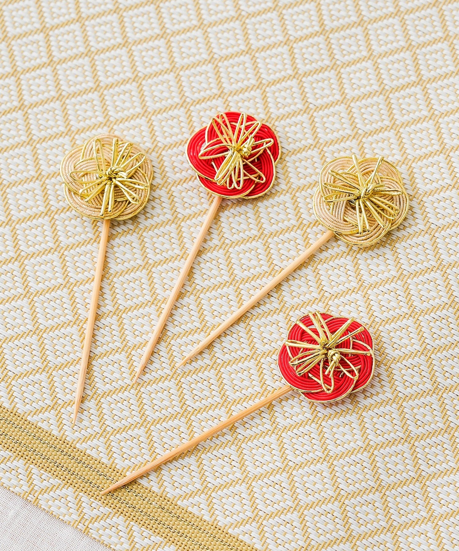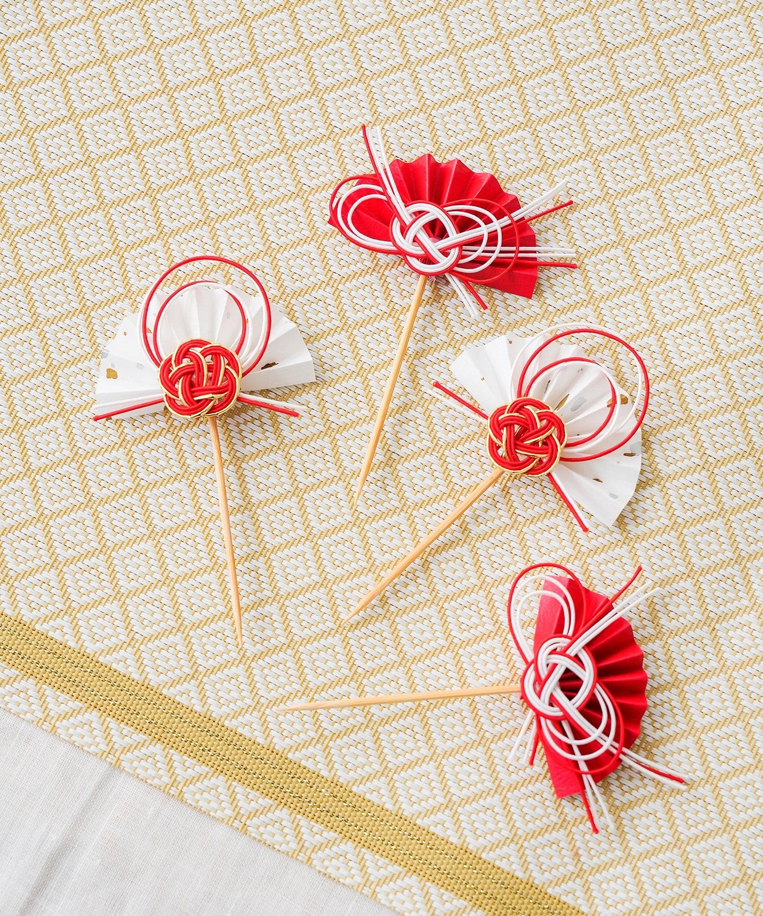 ●おせちやオードブルの飾りつけに便利な水引デザインのピック。
