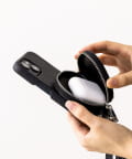 ●首や肩から掛けておくと、サッとスマートフォンを使用できて便利です。