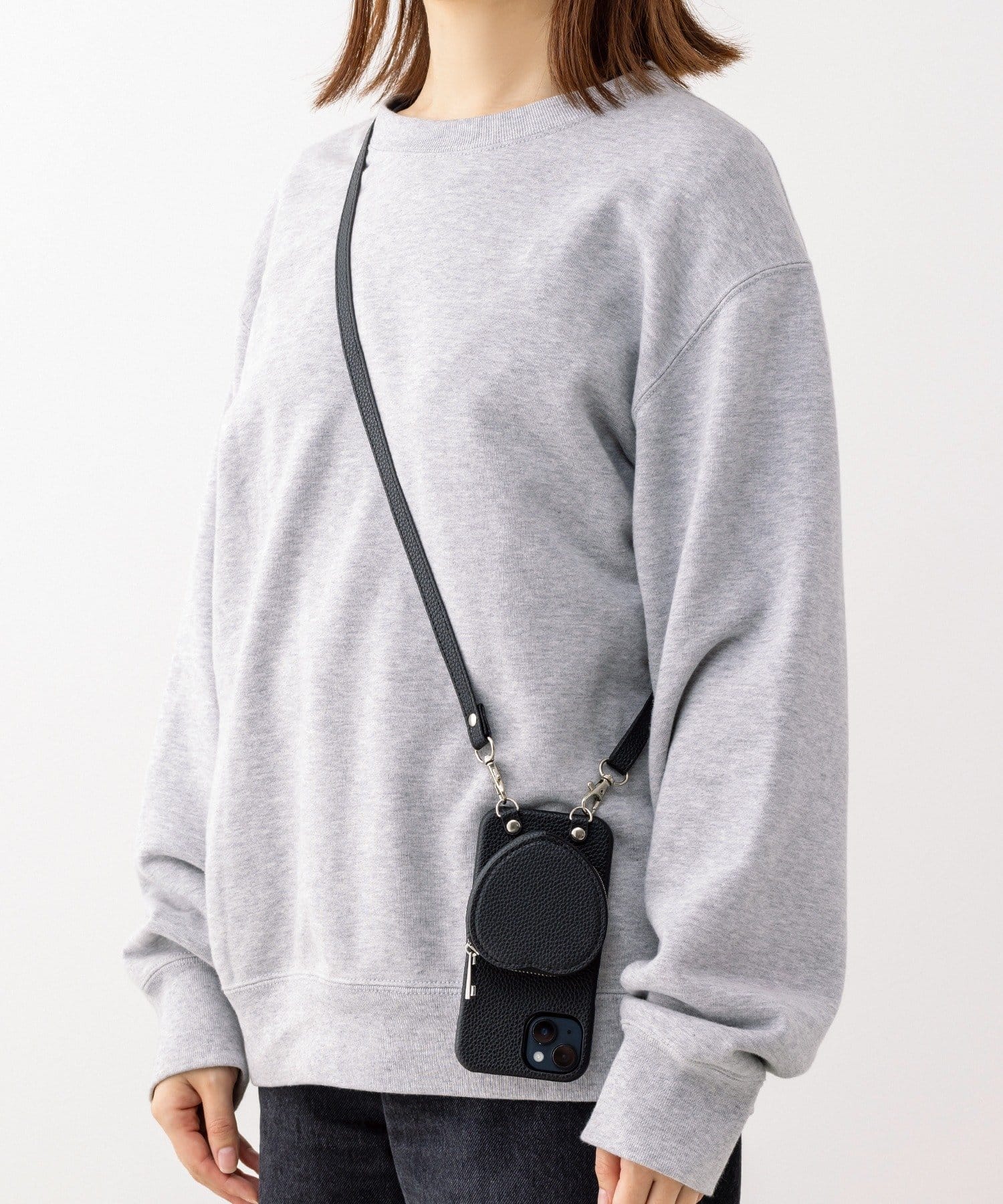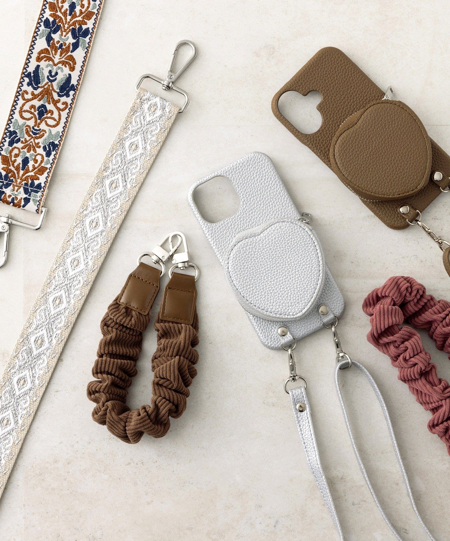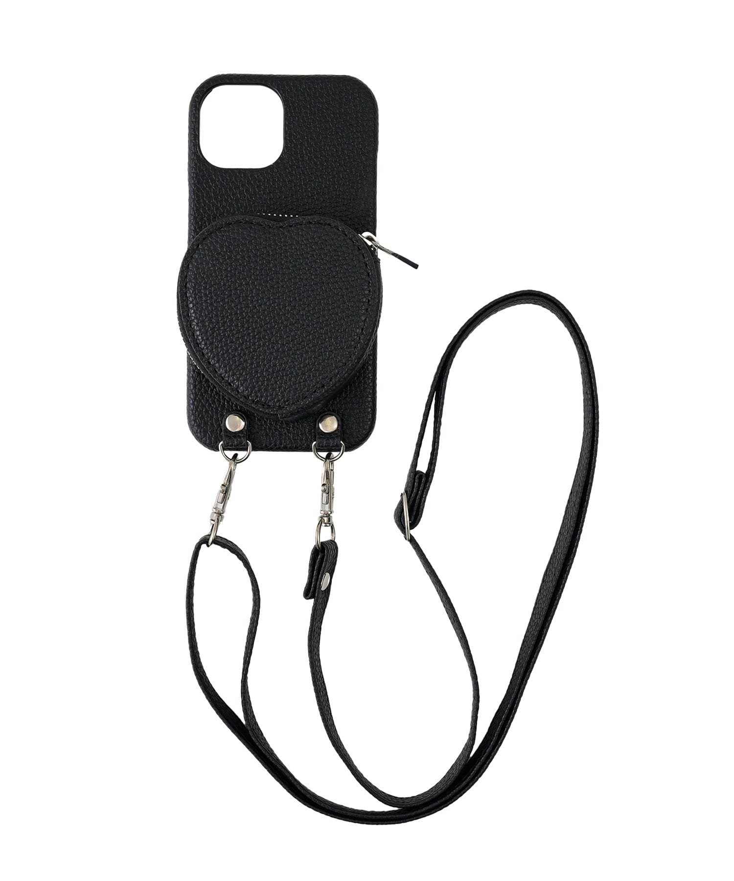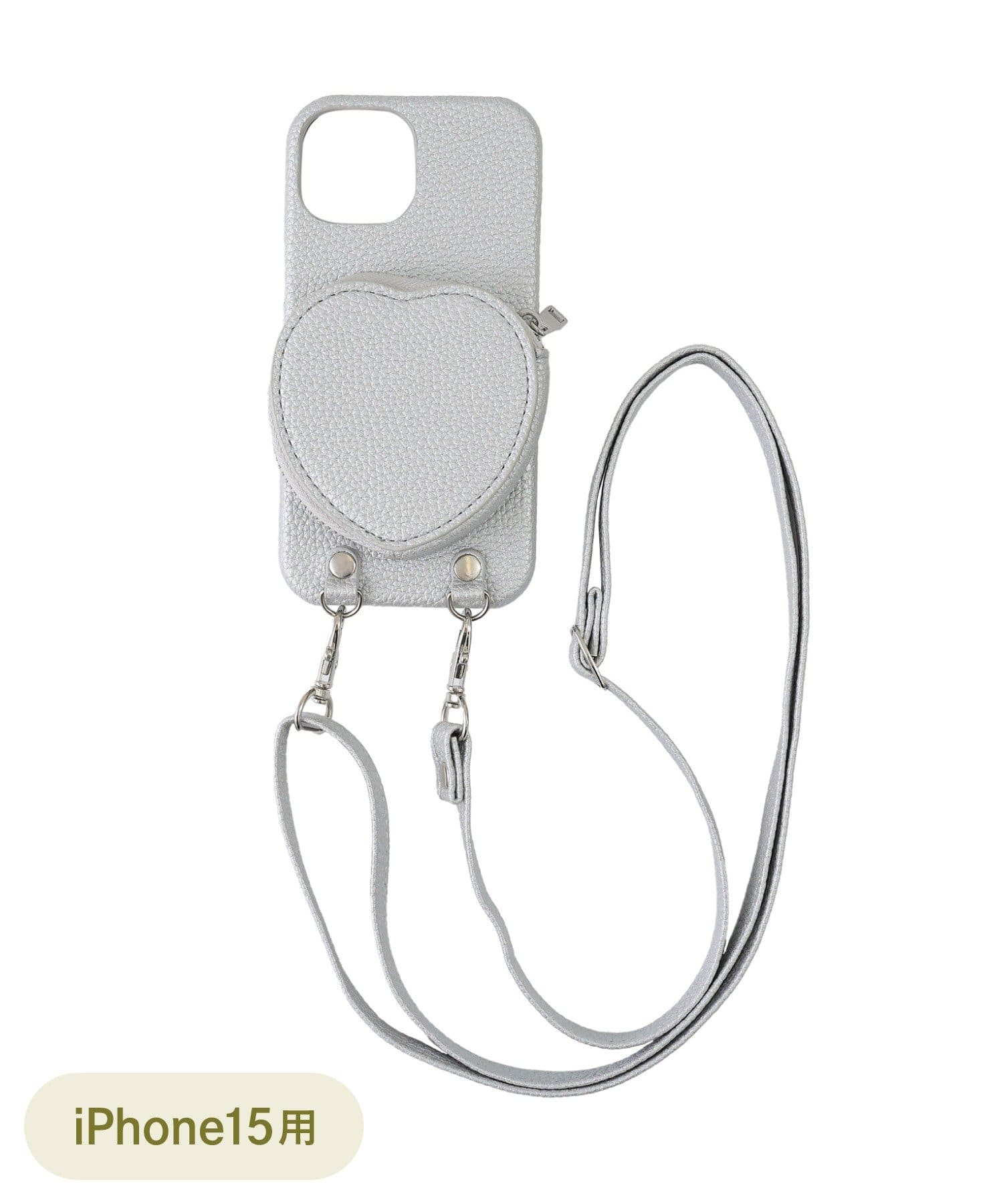 • 3COINS(スリーコインズ) ショルダー付きハートスマホケース:iPhone15用