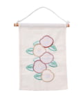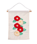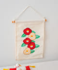 ●椿の刺繍が季節を感じさせる、やさしい風合いのタペストリー。