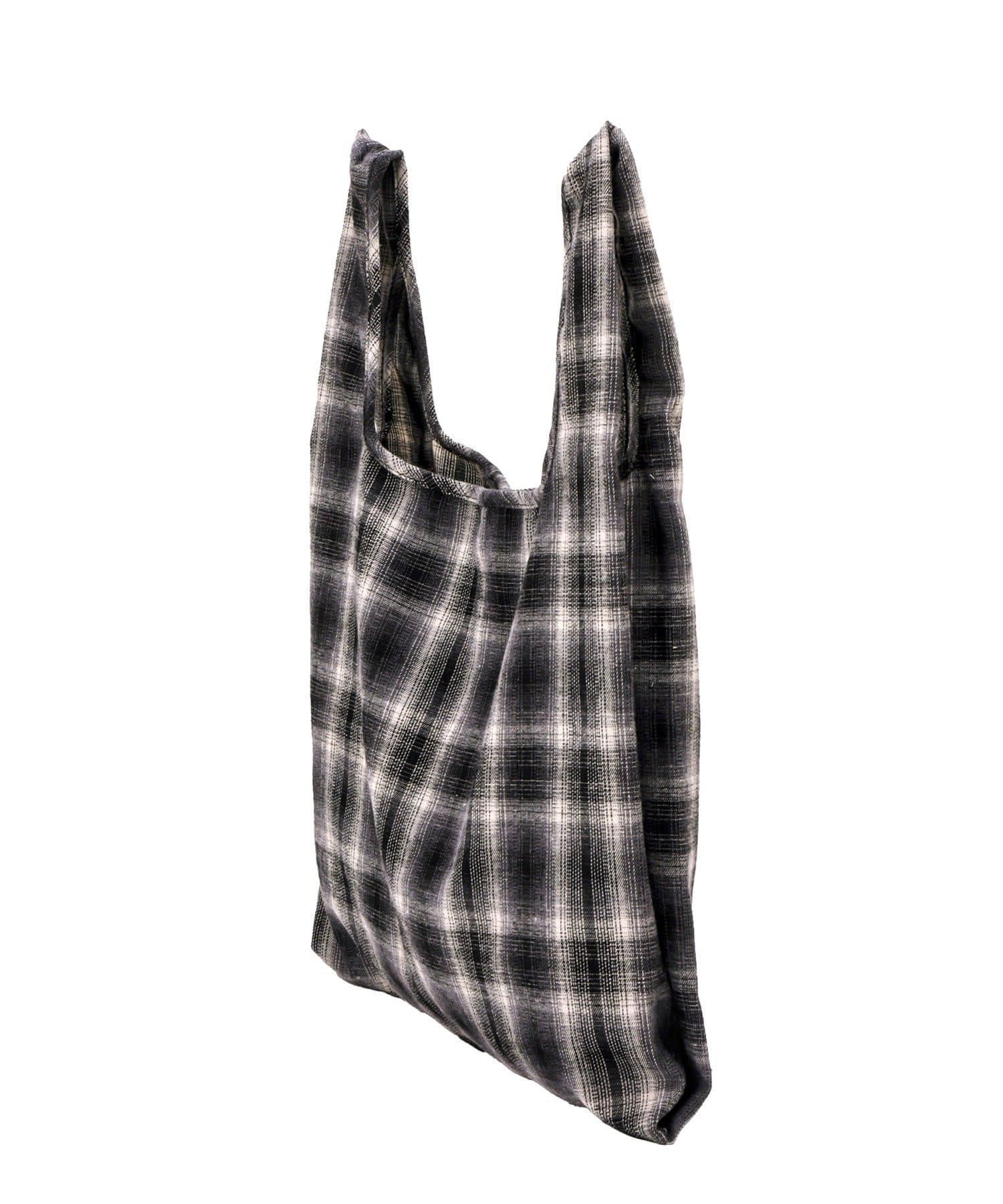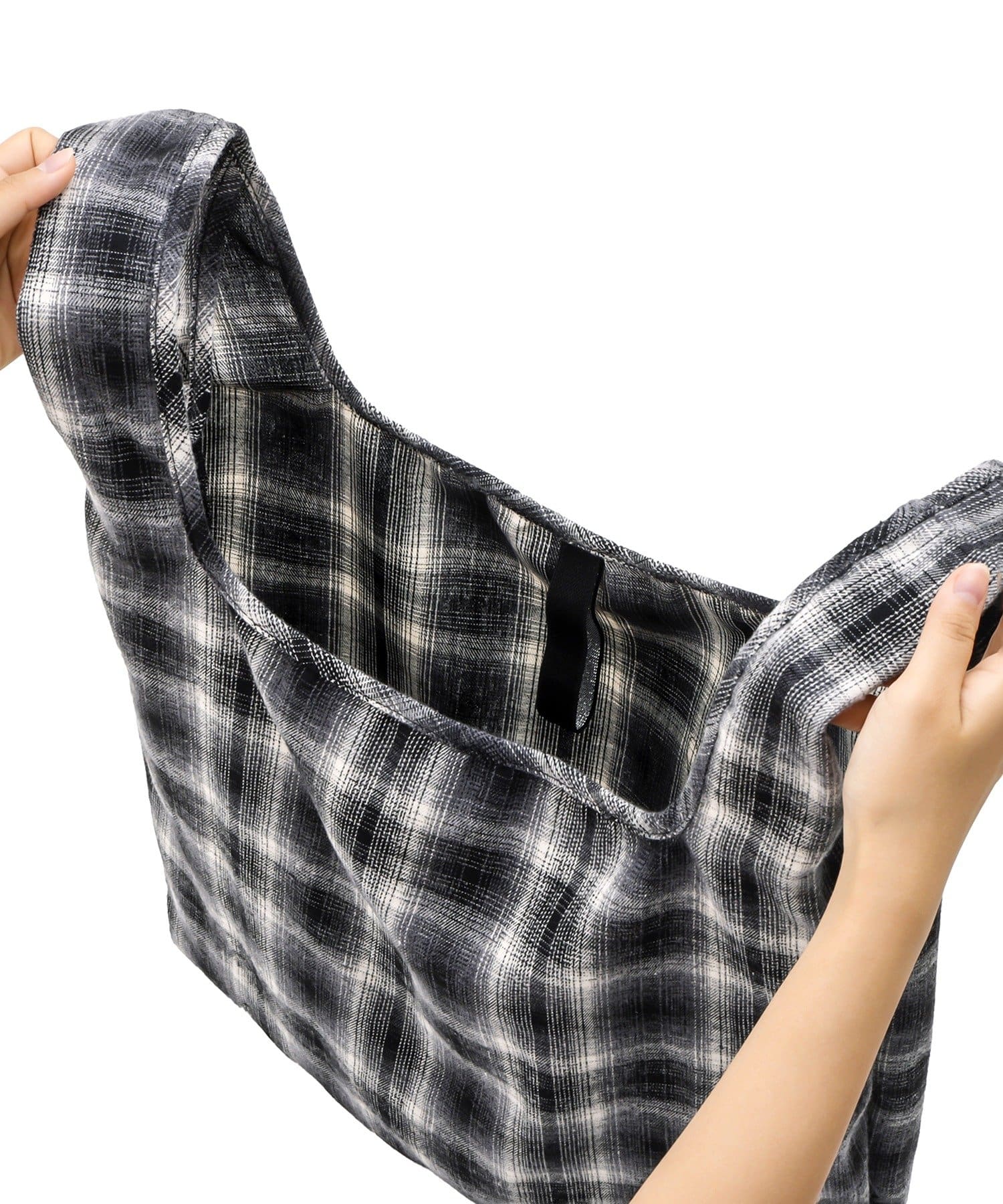 ●グラデーションのようなチェック柄が目を惹くエコバッグ。