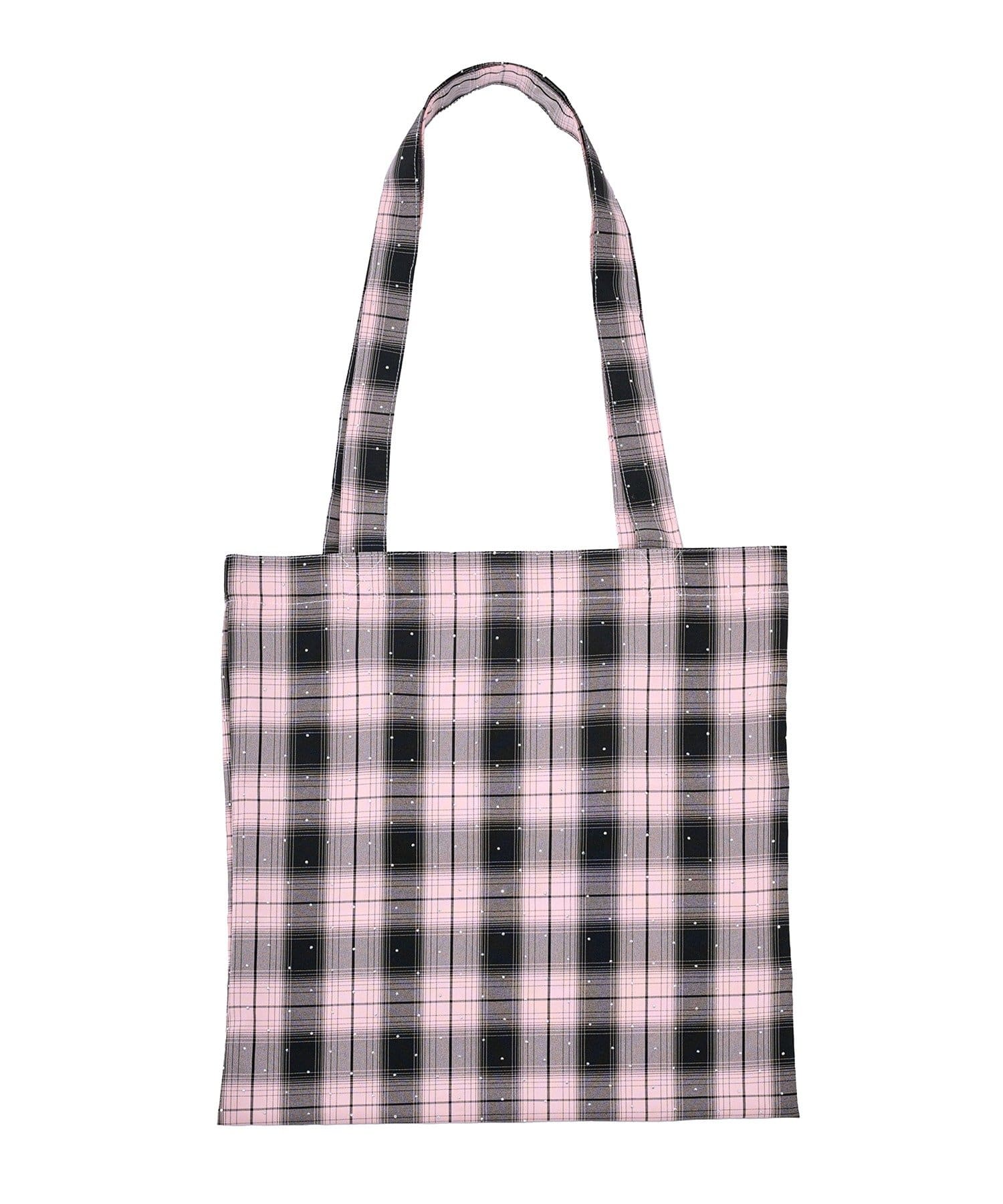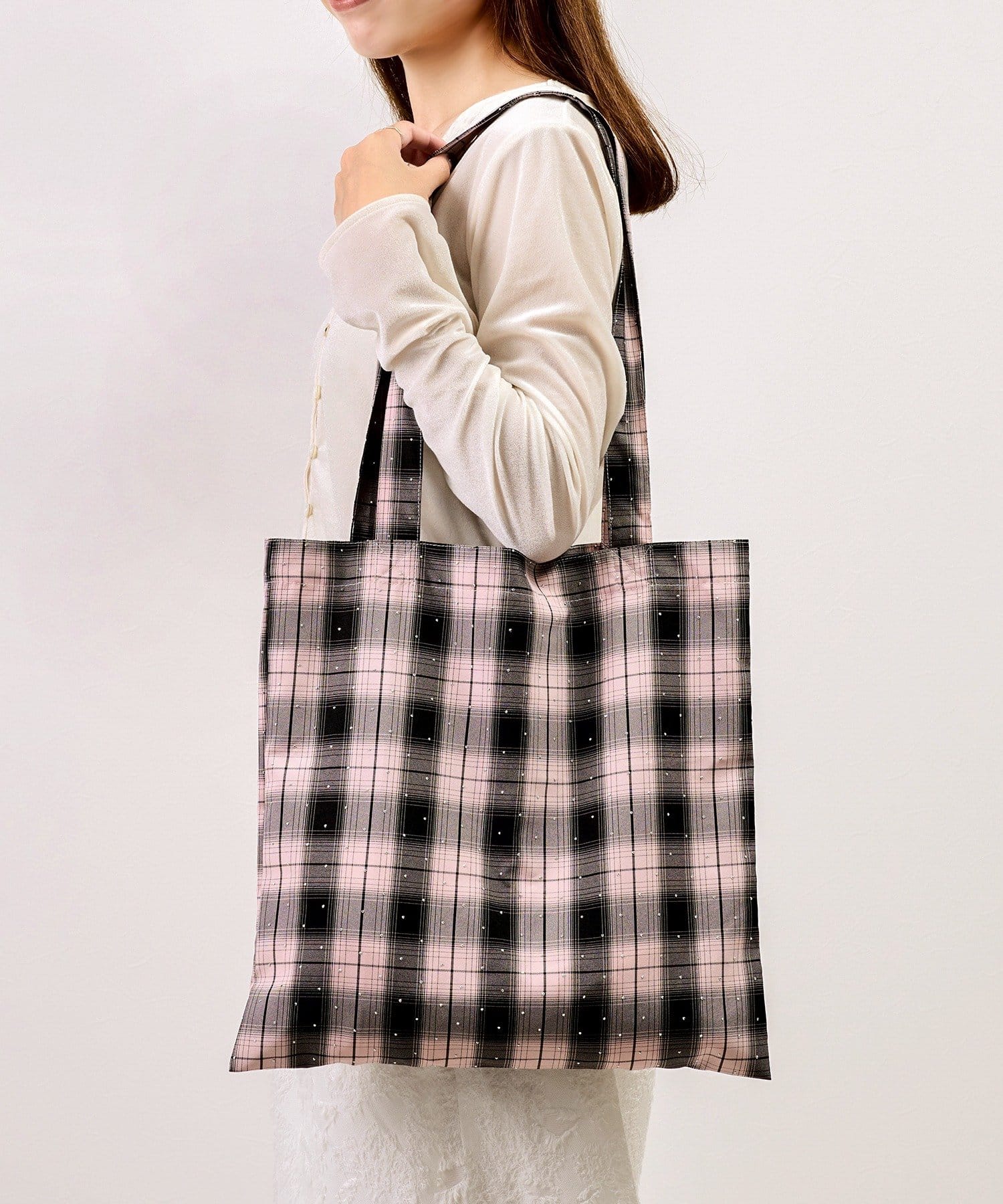 ●チェック柄とラインストーンの組み合わせが可愛いエコバッグ。