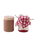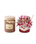 ●パンにぴったりのイチゴジャムとはちみつが入った、おままごとセットです。