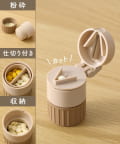 4.一番下のスペースでは薬を入れて上部のパーツをセットし回すことで薬を粉砕することができます。