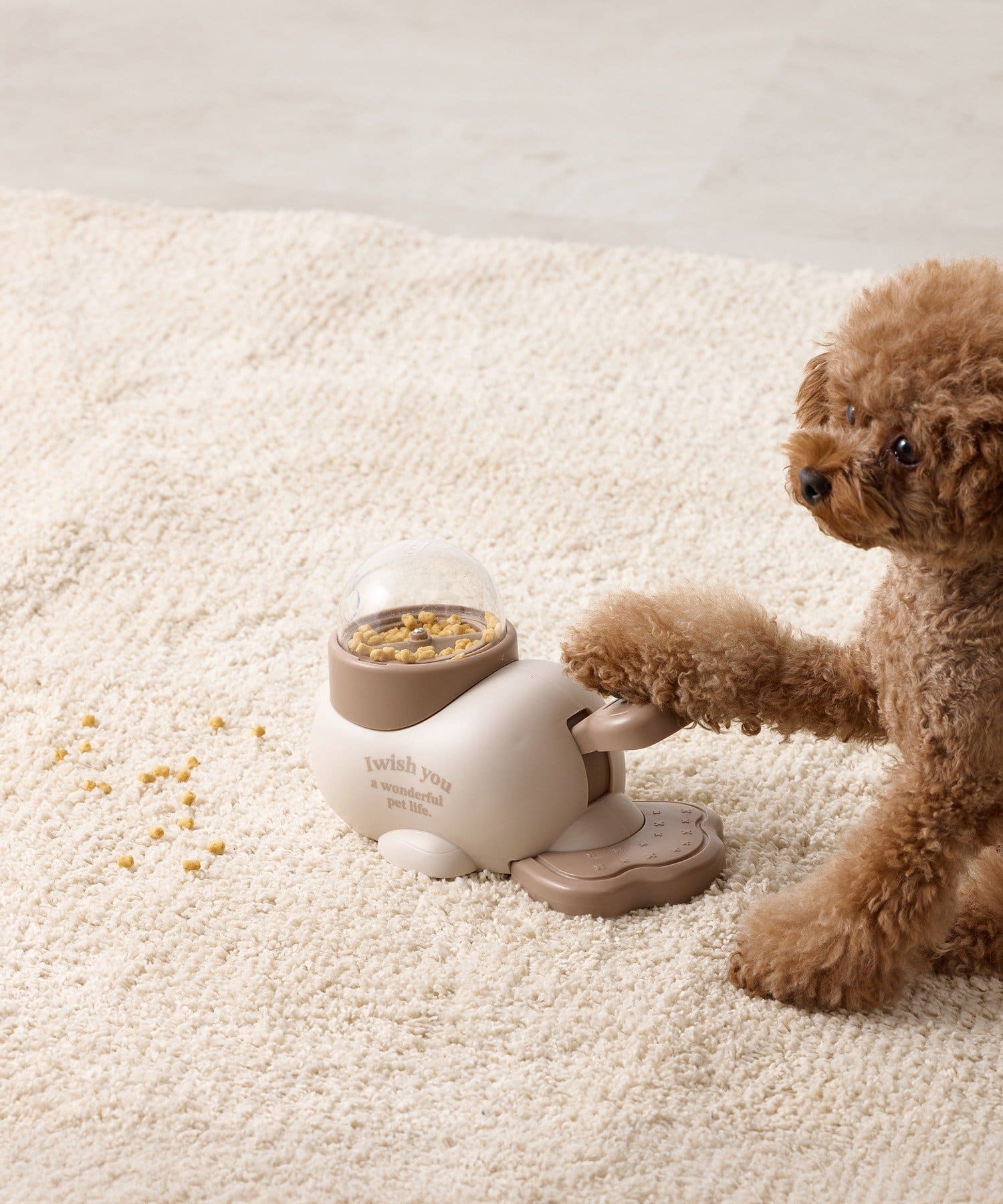 ●レバーを押すとおやつが出る仕組みで、一度にたくさん食べられず、早食い防止にも繋がります。