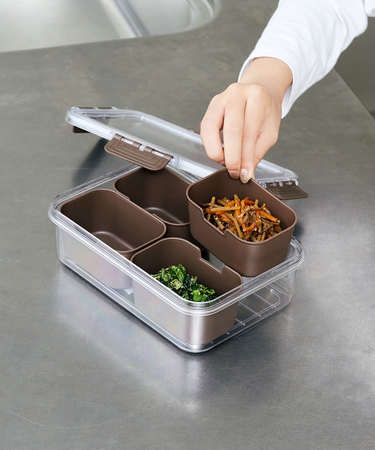 ●作り置きや余った食材を小分けにして、1つの容器でまとめて保存できます。