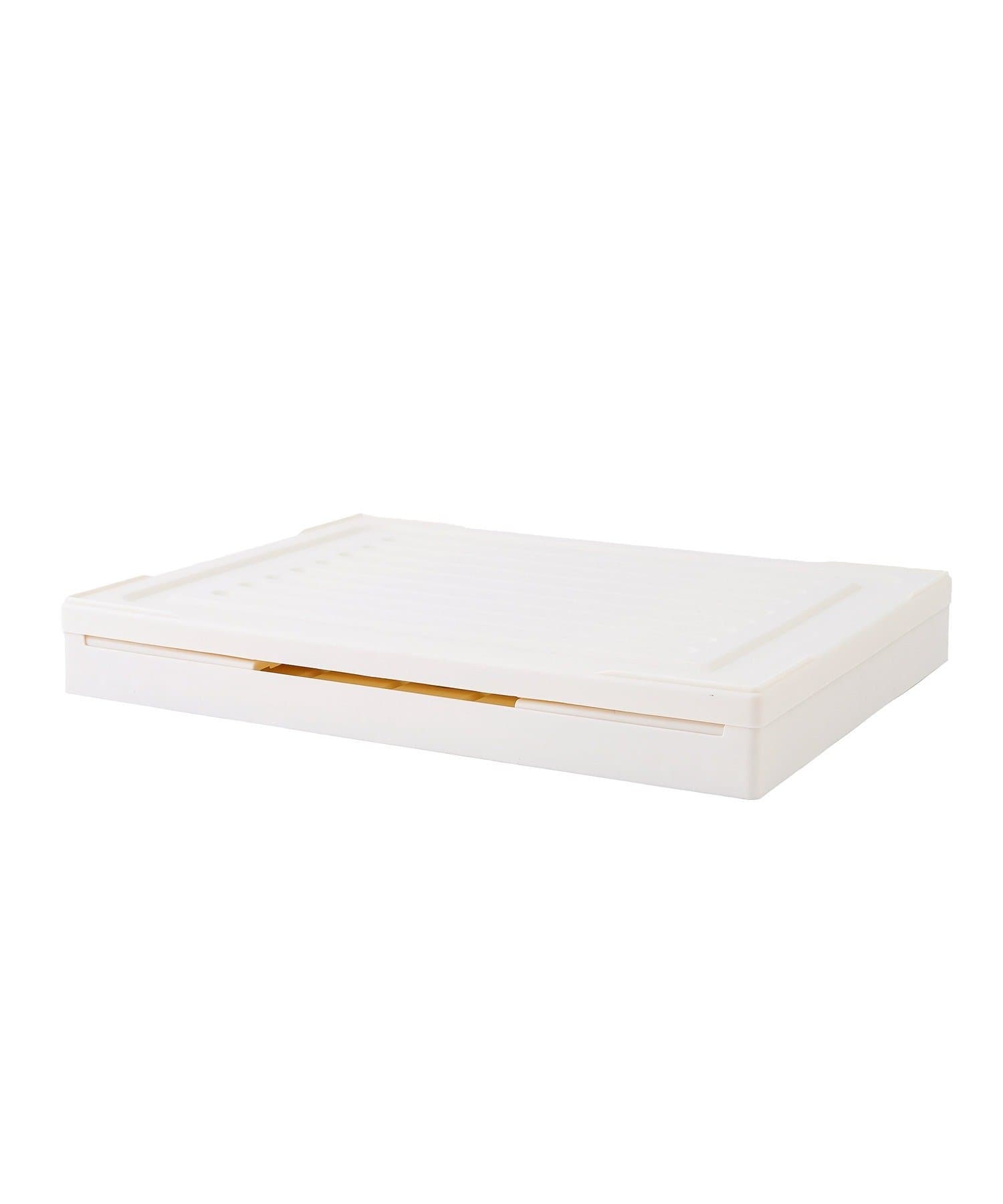 購入場所:パルクローゼット埃がかぶるのが嫌なので、出来れば何でも蓋付き収納で整理したいのですが、実際蓋が上に付いていたり横広タイプのものしかなく、取り出しにくくて困っていた時に出会った斬新な扉の収納!見つけた時は本当に嬉しかったです。プラスチックなので移動しやすいしお値段もお手頃。それだけに強度が心配でしたが、2段に重ねて上下とも本を収納しているのですが、今のところ全く問題なくへこたれずに我が家で大活躍してくれています!!