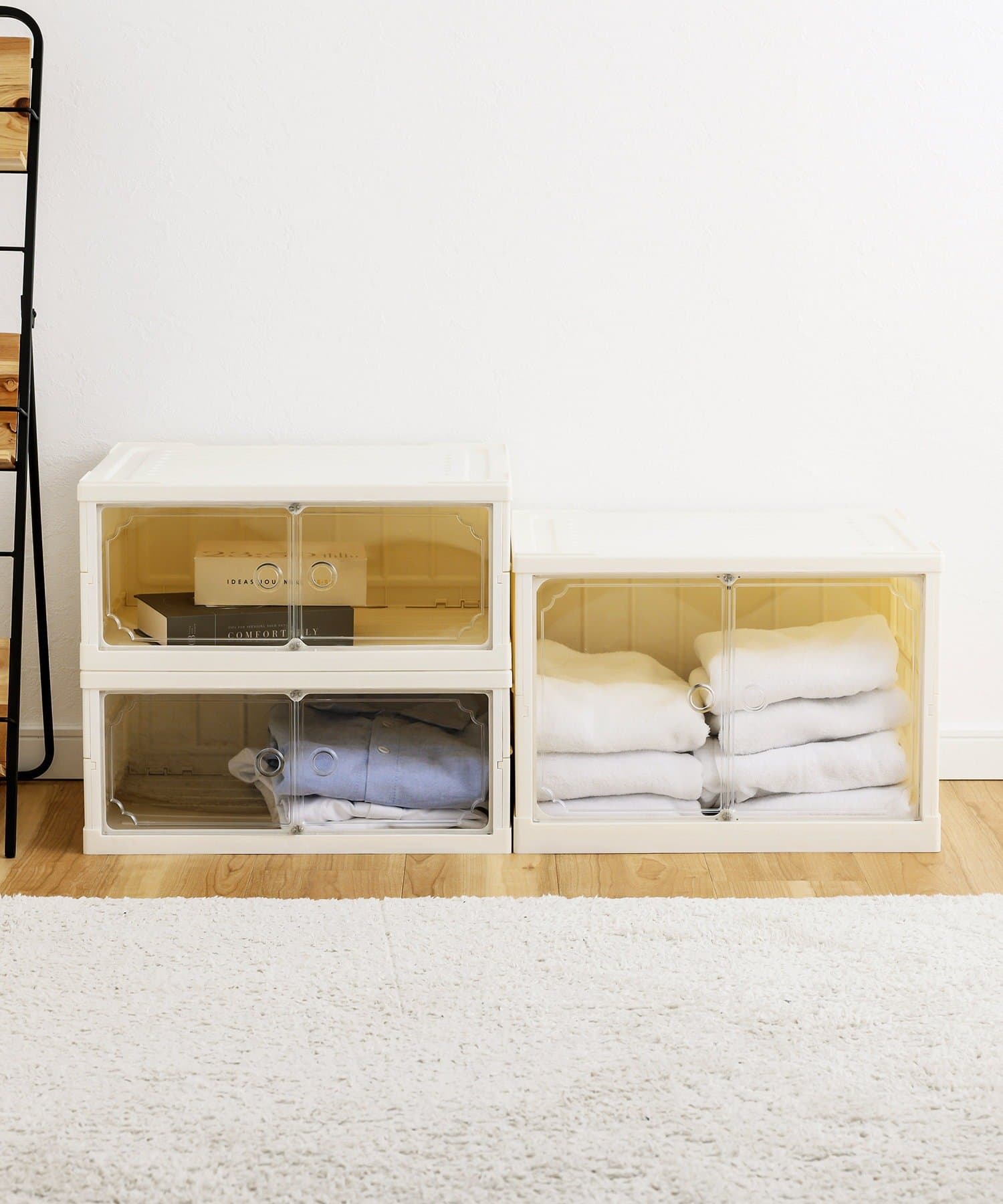 購入場所:パルクローゼット軽くて取り扱いが簡単で透明の扉付きの安価な収納ボックスをずっと探していて、まさに理想通りの商品に出会えました!大きさも収納したかったものにジャストフィット!1個目の組み立て時に少々手こずりましたが、コツを掴めば簡単でした。扉の透明度は高く、マグネットが付いていて開閉もバッチリ。商品があまりに良すぎたので追加で買うか迷ってます。