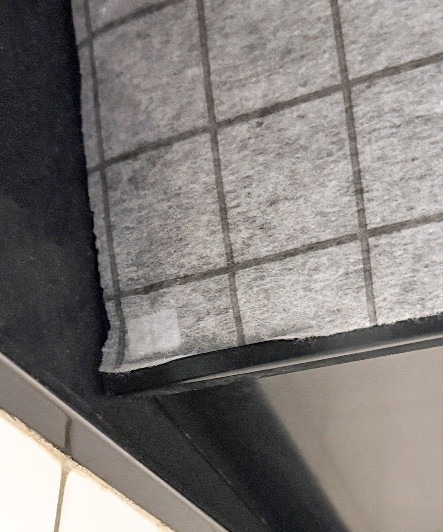 4.フィルター表面のしわやたるみを伸ばして、面ファスナーに押し付けるようにして取り付けてください。