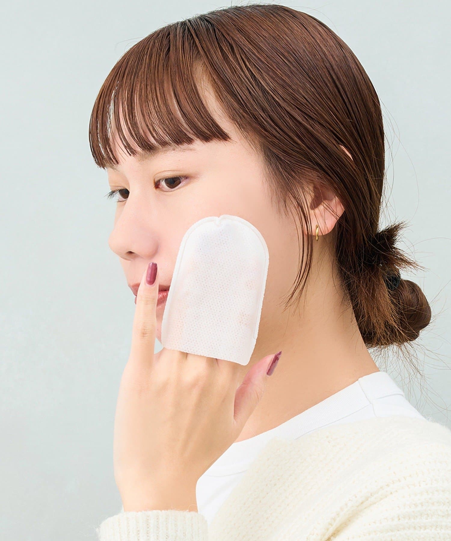 2.メッシュ面でお肌をやさしく拭き取り後、裏側のコットン面でも同じように拭き取ってください。拭き取り後は押さえるようにして美容成分を角質層に浸透させてください。