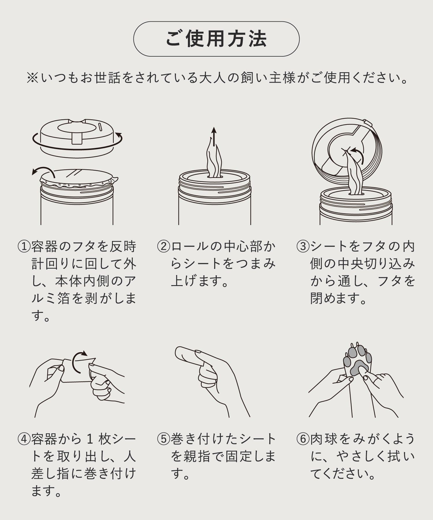 ●ペットの肉球の汚れを拭き取り、清潔に保ちながら乾燥からも保護します。
