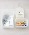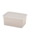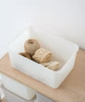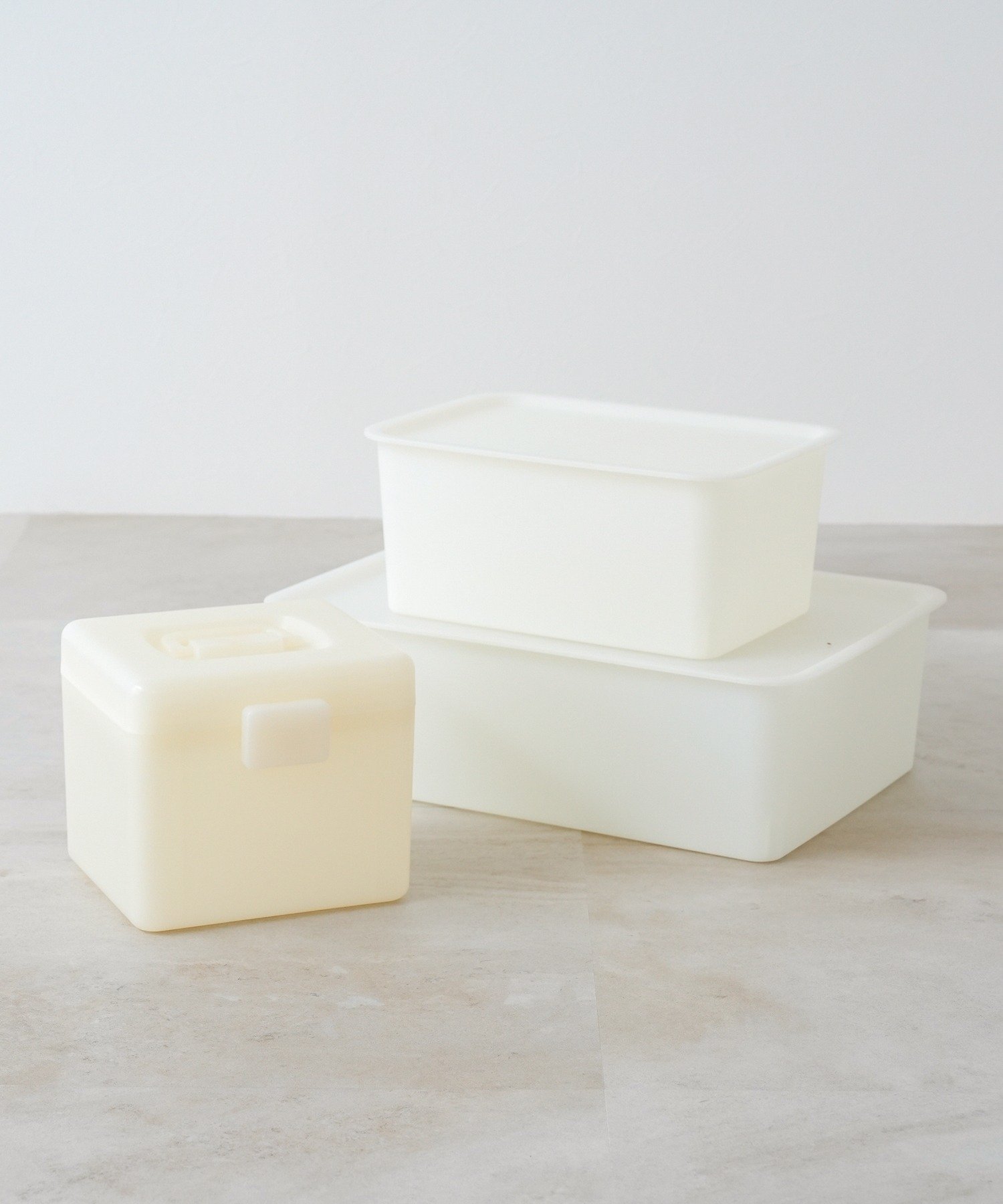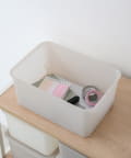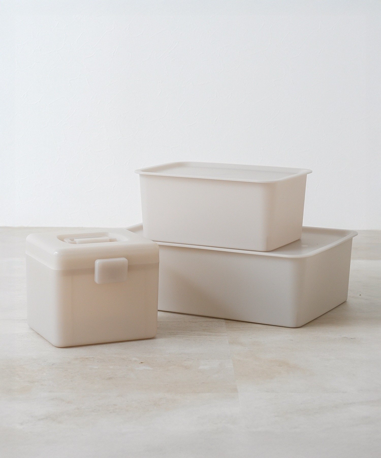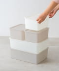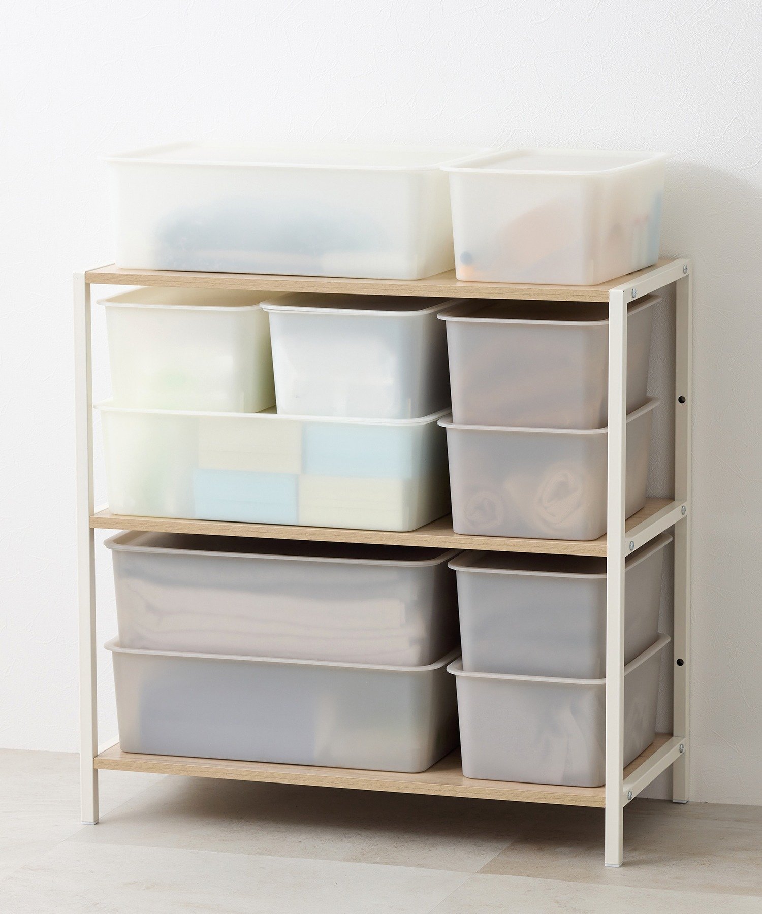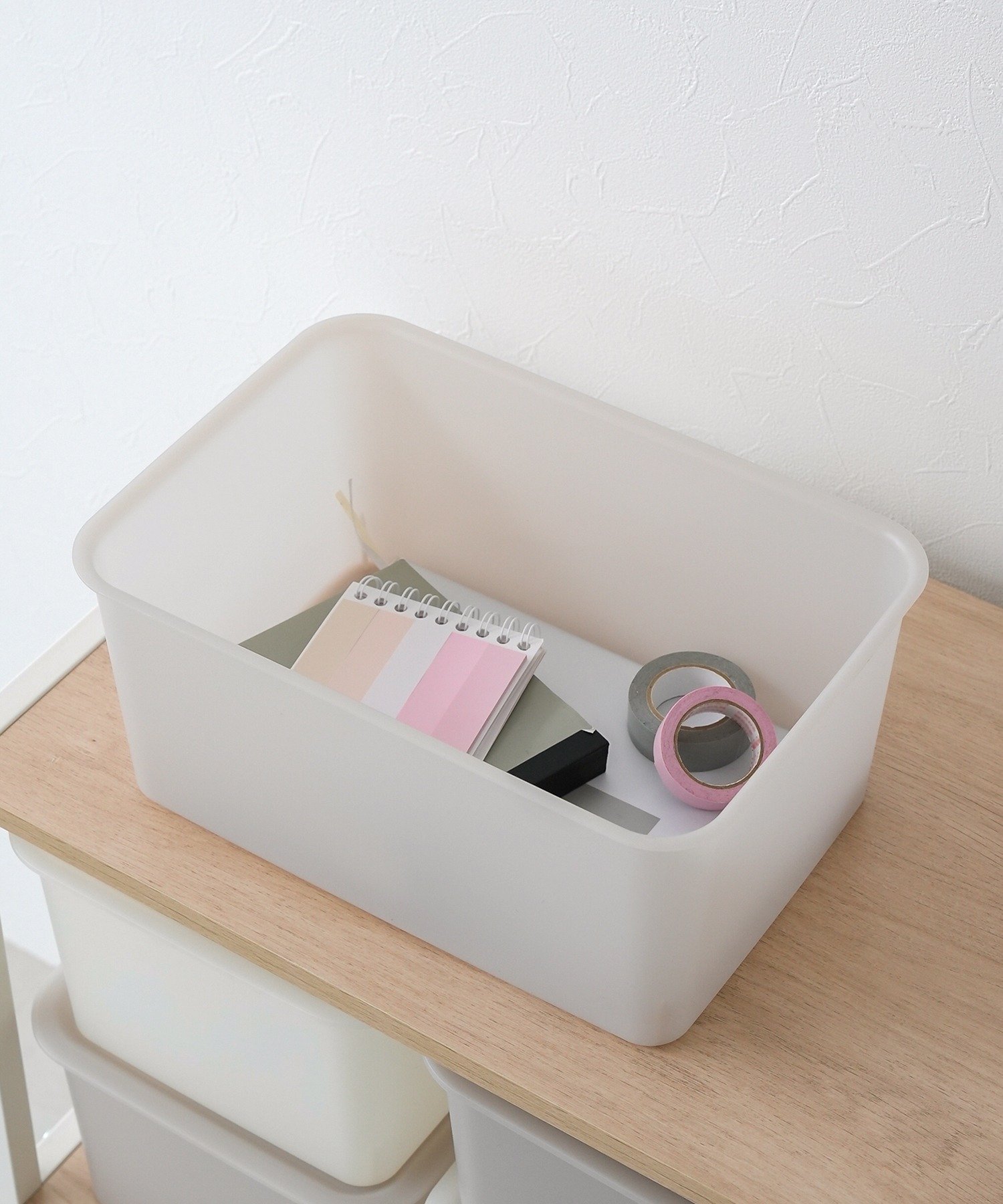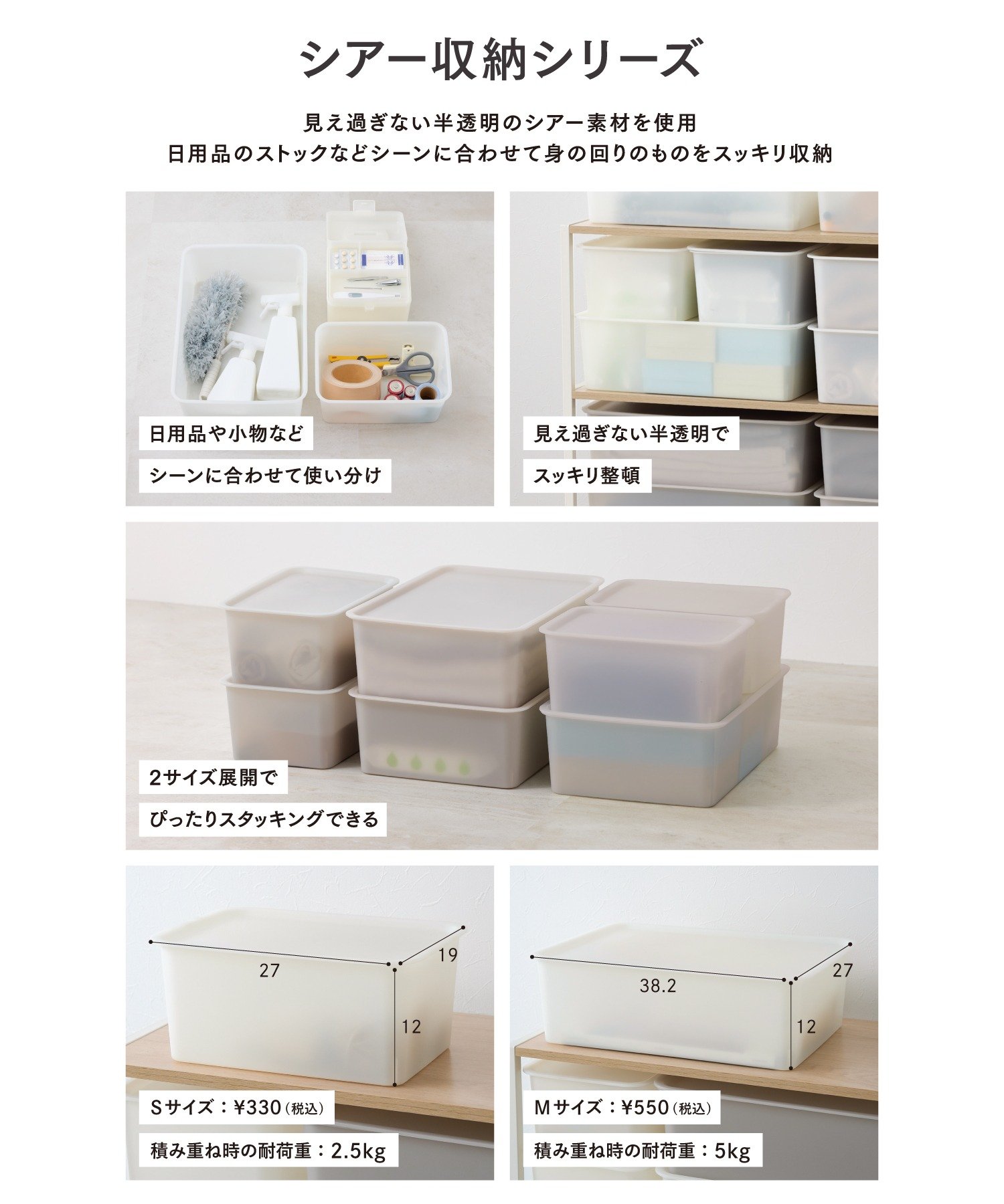 ●中身をほどよく隠せる、蓋付きの半透明シアー収納ボックスです。