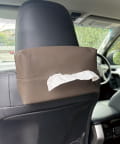 ●ヘッドレストに簡単装着、いつでもサッと取り出せる車内用ティッシュケース収納。