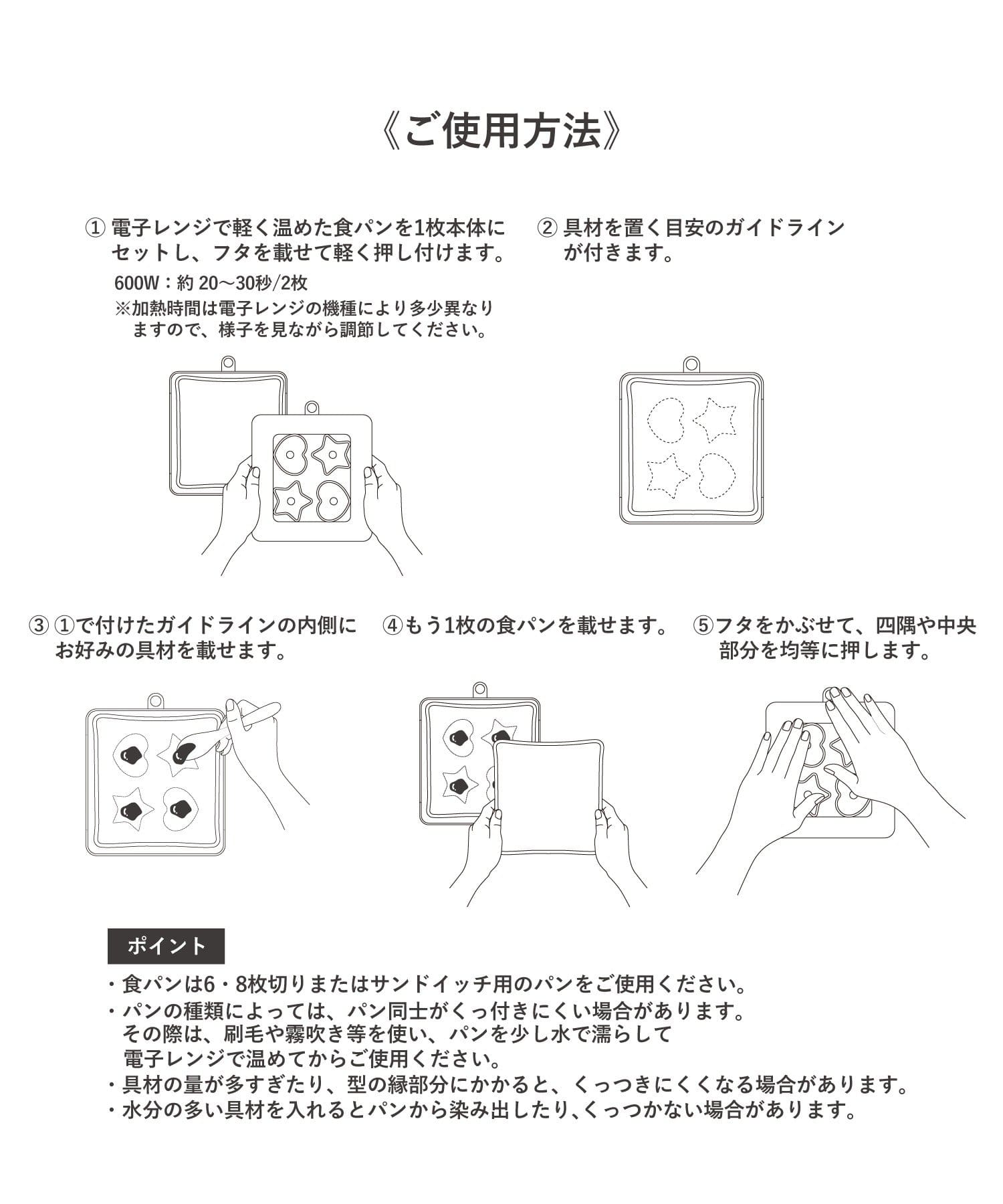 ●パンを型にのせてギュッと押すだけ。誰でも簡単に可愛いサンドイッチが作れる!