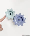 ●2つの歯車がかみ合うように壁に取り付けて手でくるくると回して遊べます。