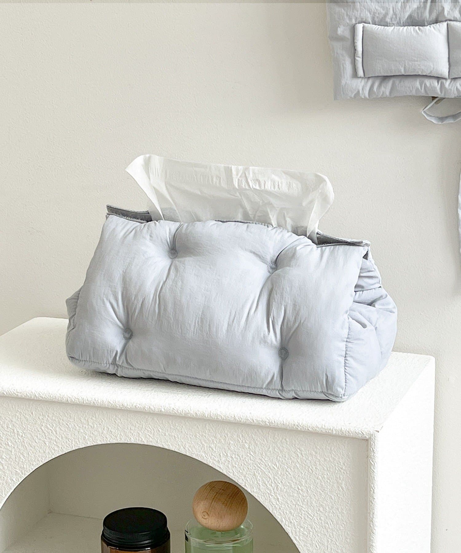 ●置いておくだけでかわいさアップ。インテリアとしても楽しめるモコモコティッシュケースです。