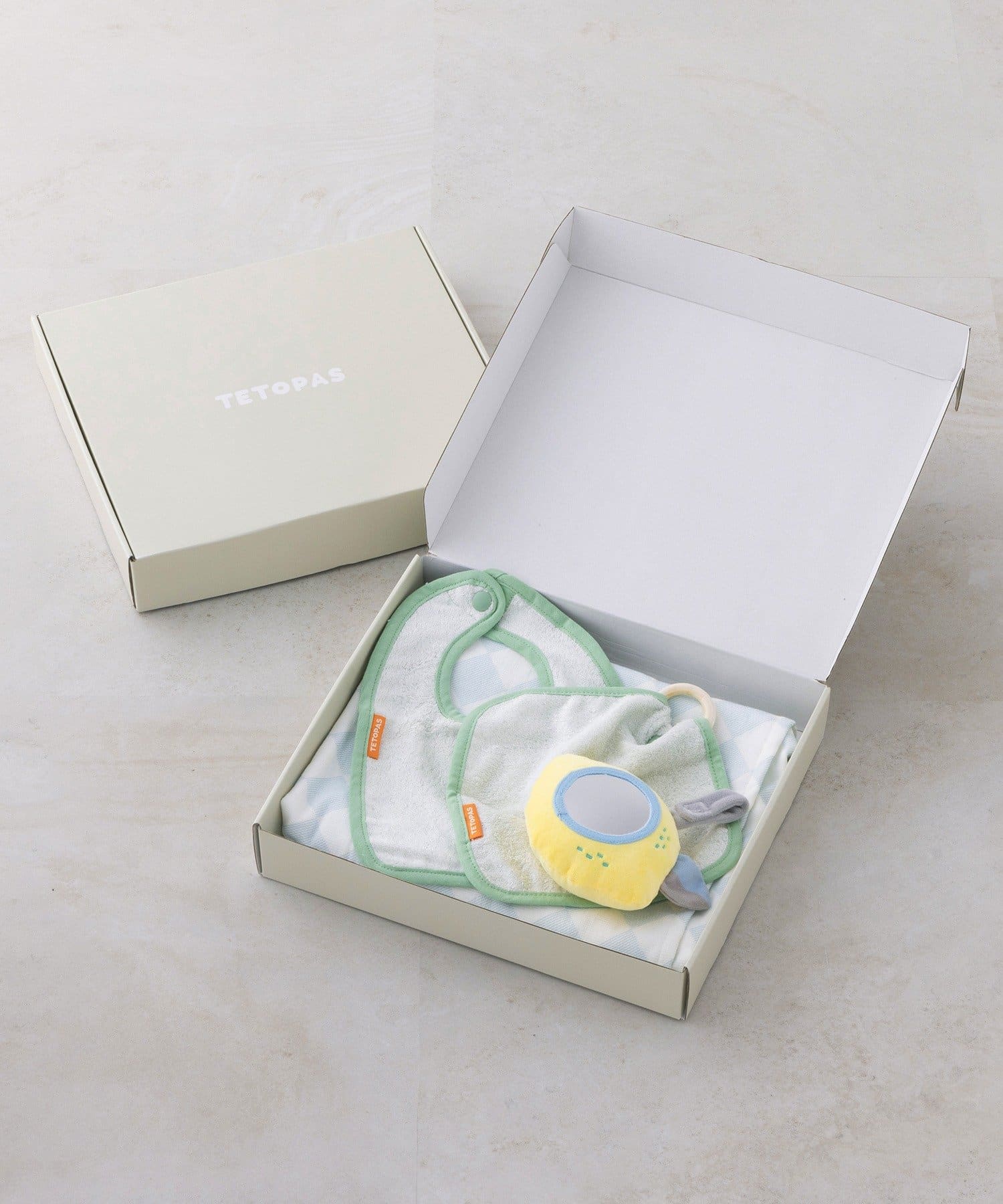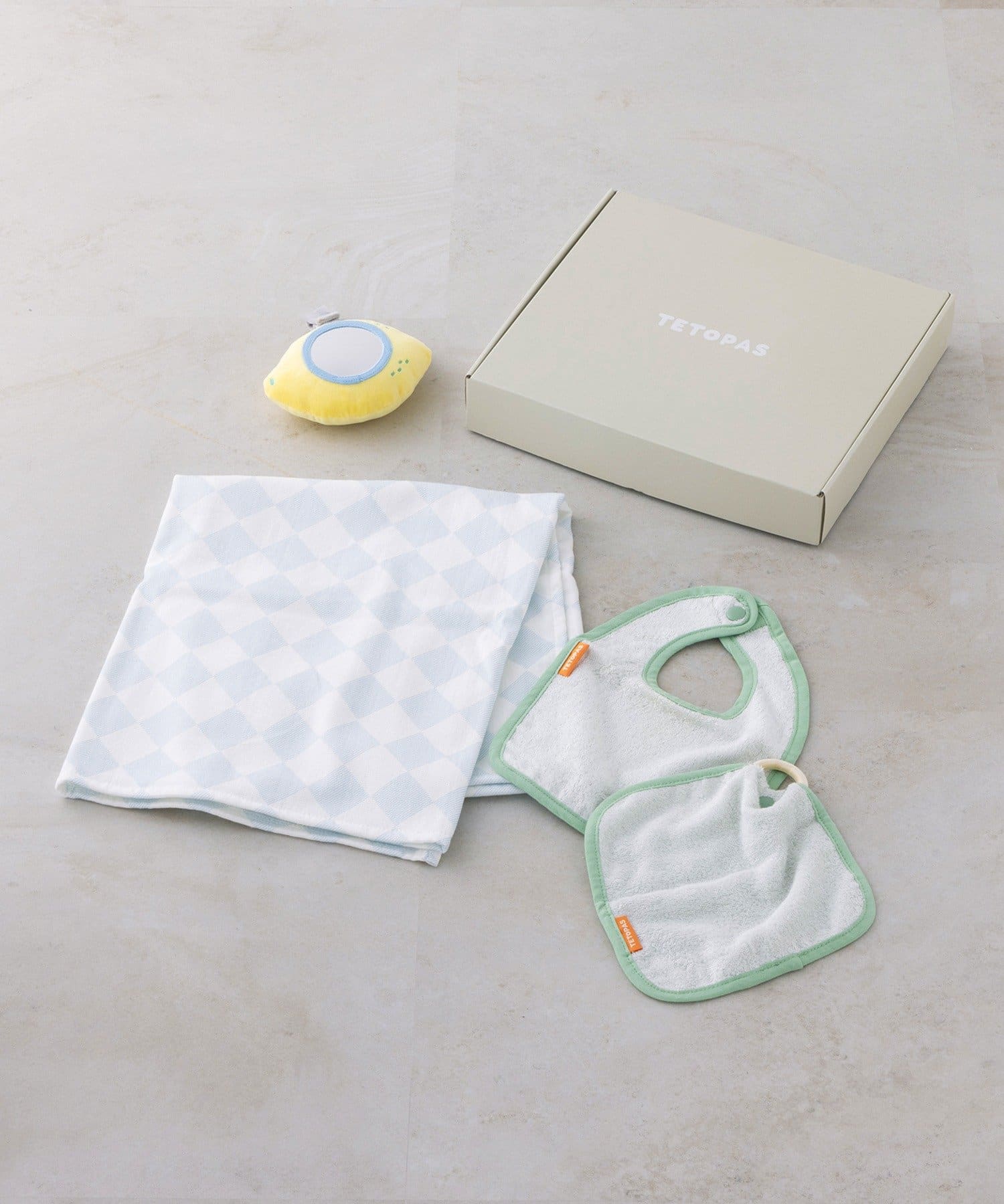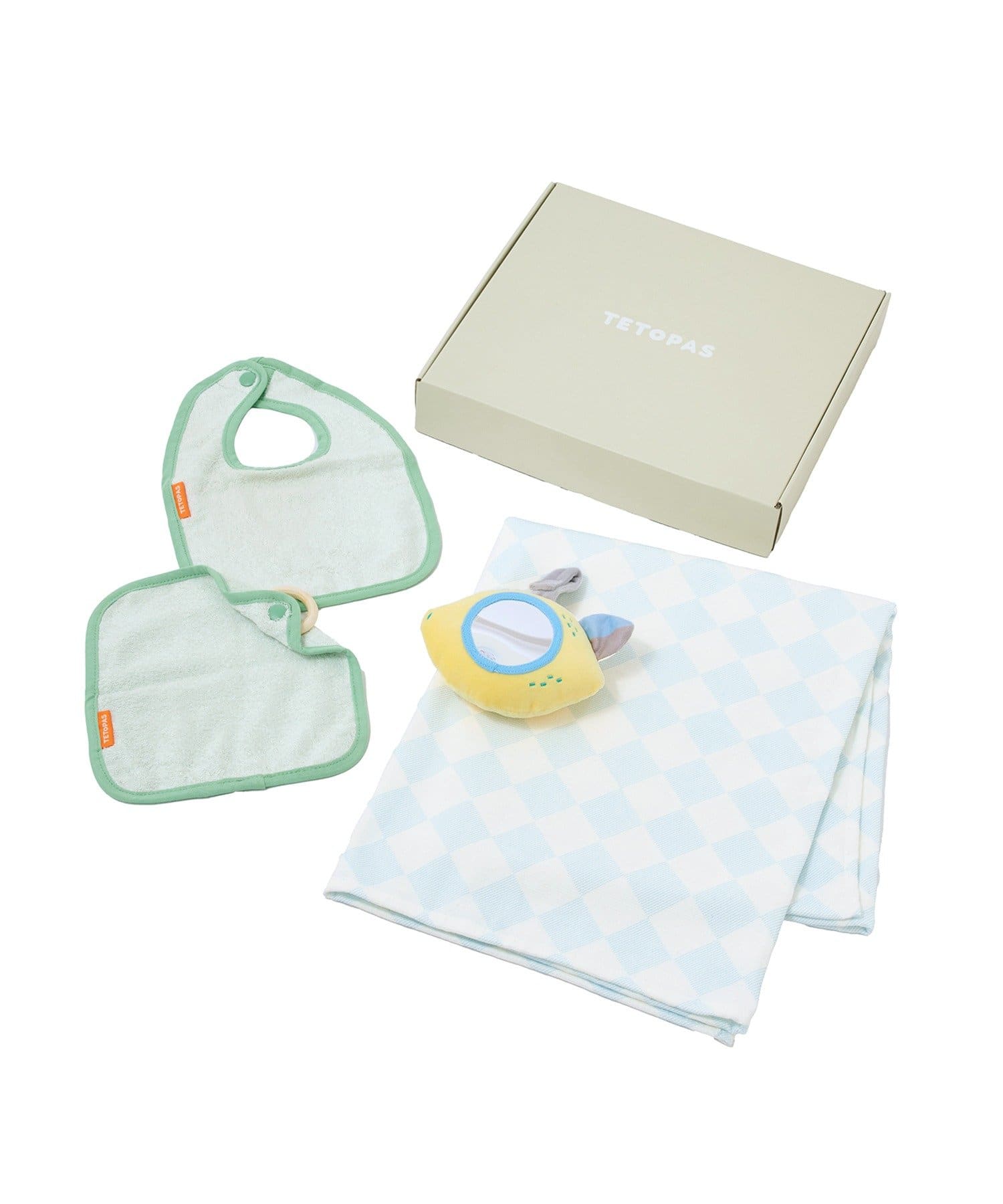 セット内容:ガーゼお包み・スタイ・ハンドタオル・ミラートイ