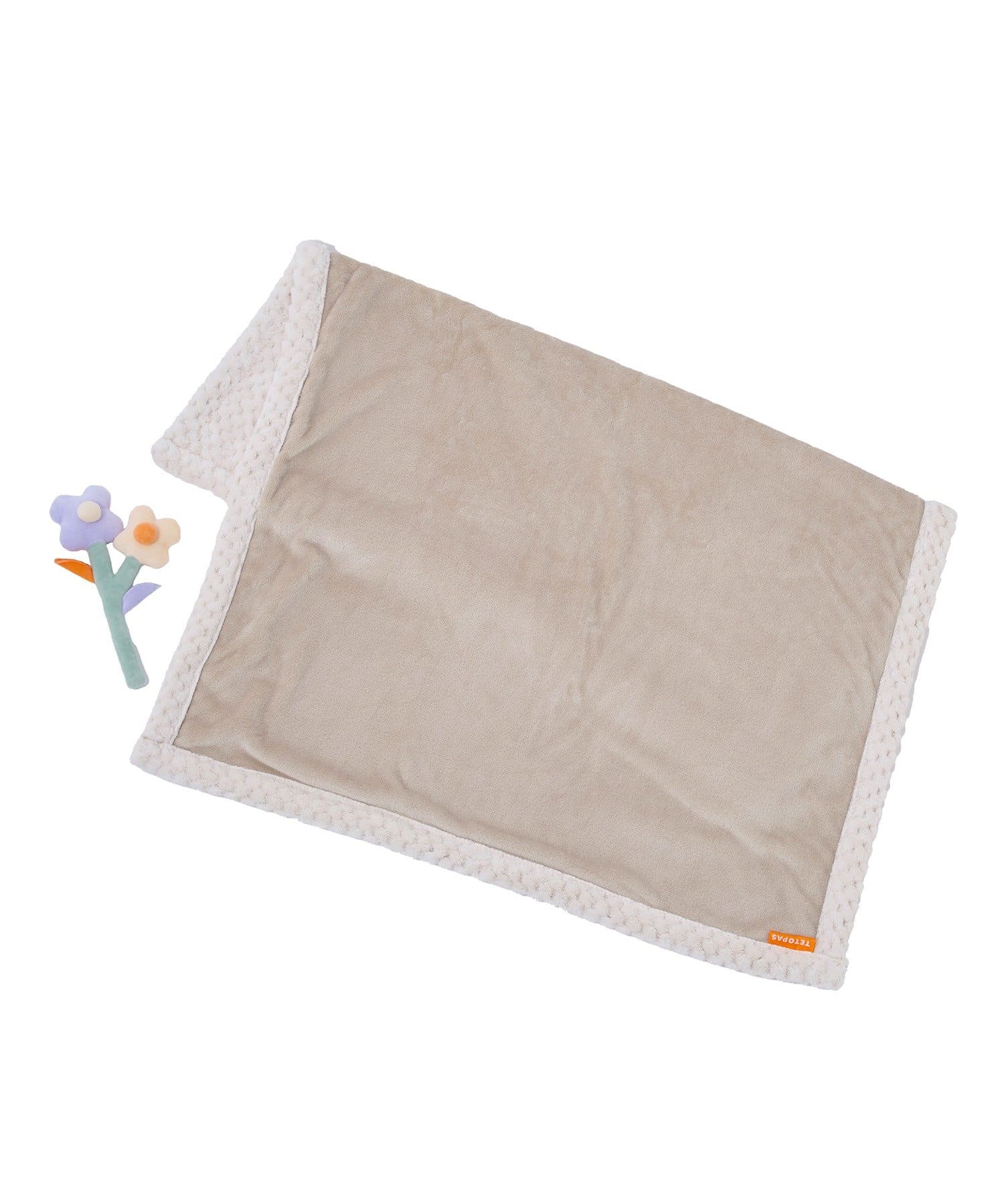 ● お昼寝タイムやお出かけに使える、ブランケットとおもちゃのセットです。